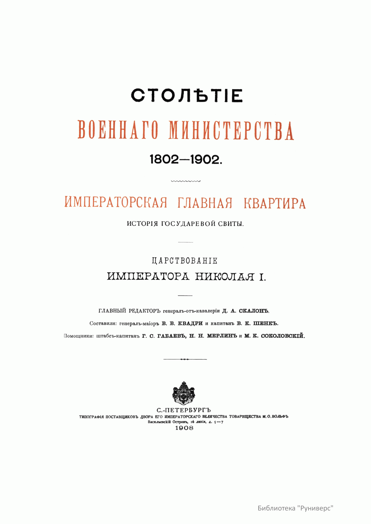 Столѣтiе военнаго министерства. 1802-1902. Императорская главная квартира. Исторiя государевой свиты. Царствованiе Императора Николая I. Книга 2