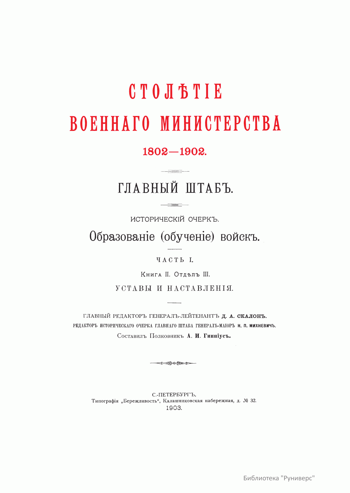Столетие военного министерства. 1802-1902. Главный штаб. Исторический очерк. Образование (обучение) войск