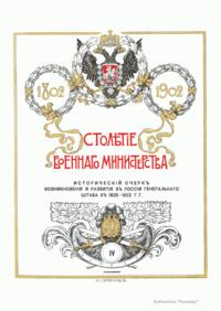 Столѣтiе военнаго министерства. 1802-1902. Главный штабъ. Историческiй очеркъ возникновенiя и развитiя въ Россiи генеральнаго штаба въ 1825-1902 гг.