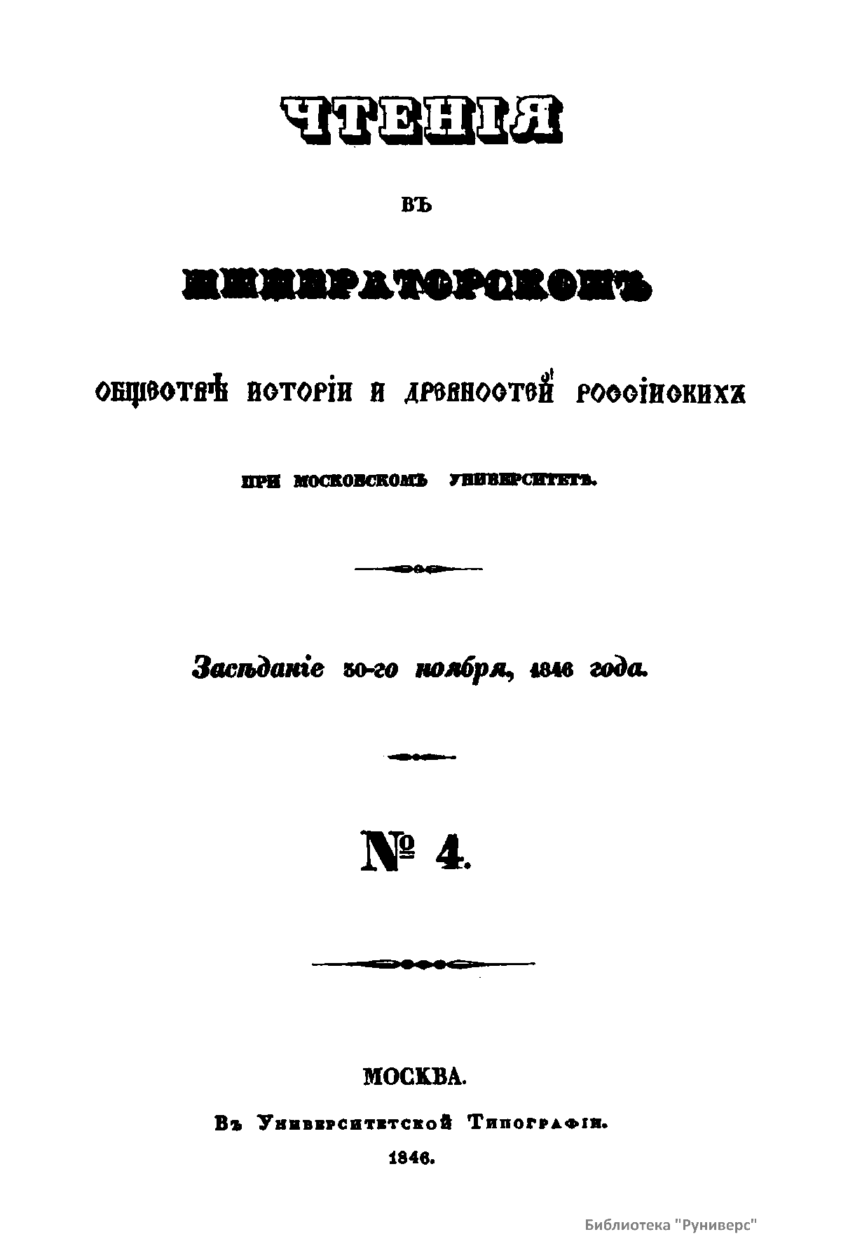 Чтенiя въ Императорскомъ Обществѣ Исторiи и Древностей Россiйскихъ при Московскомъ Университетѣ. Годъ второй. №4