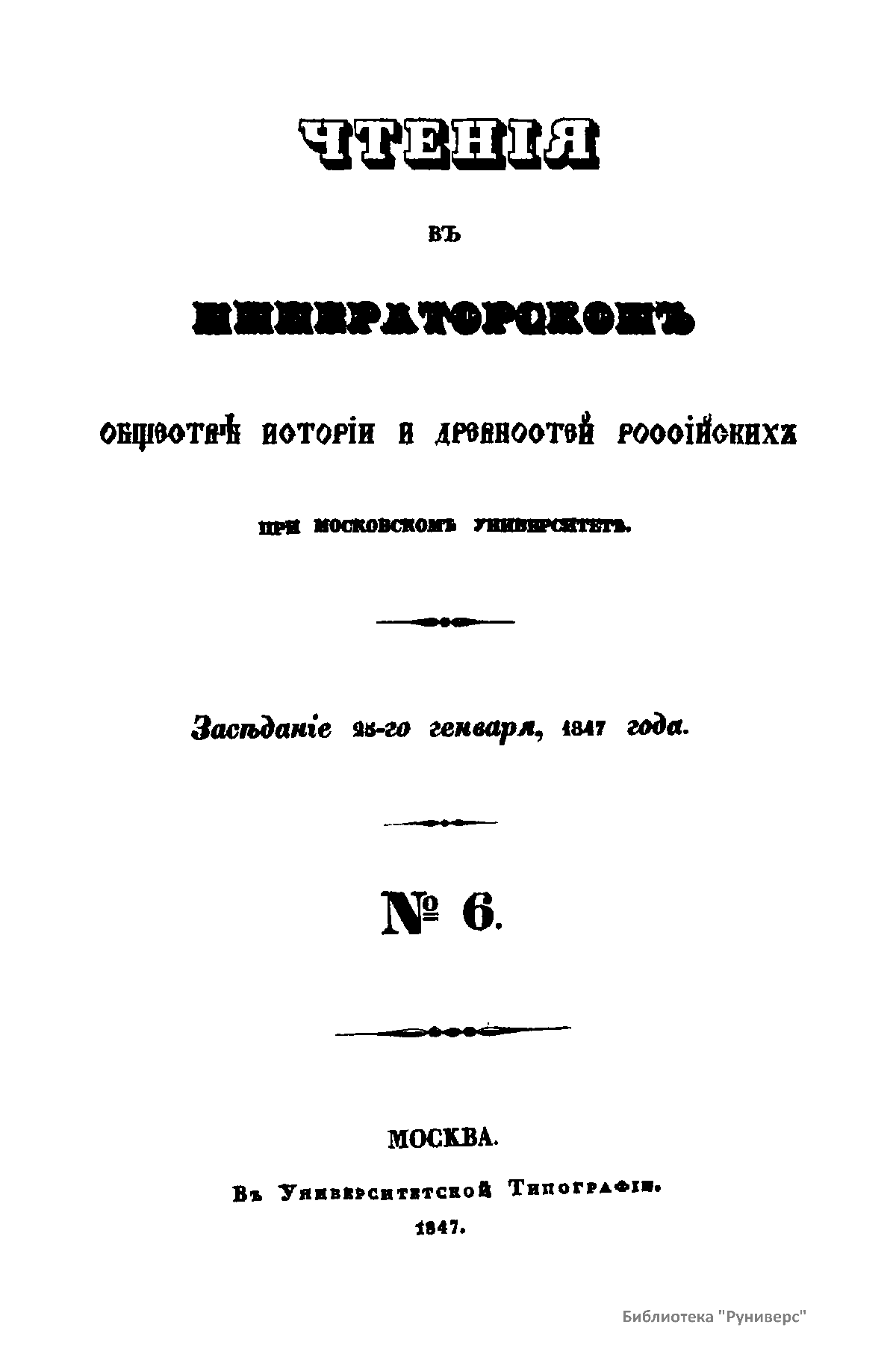 Чтенiя въ Императорскомъ Обществѣ Исторiи и Древностей Россiйскихъ при Московскомъ Университетѣ. Годъ второй. №6