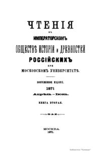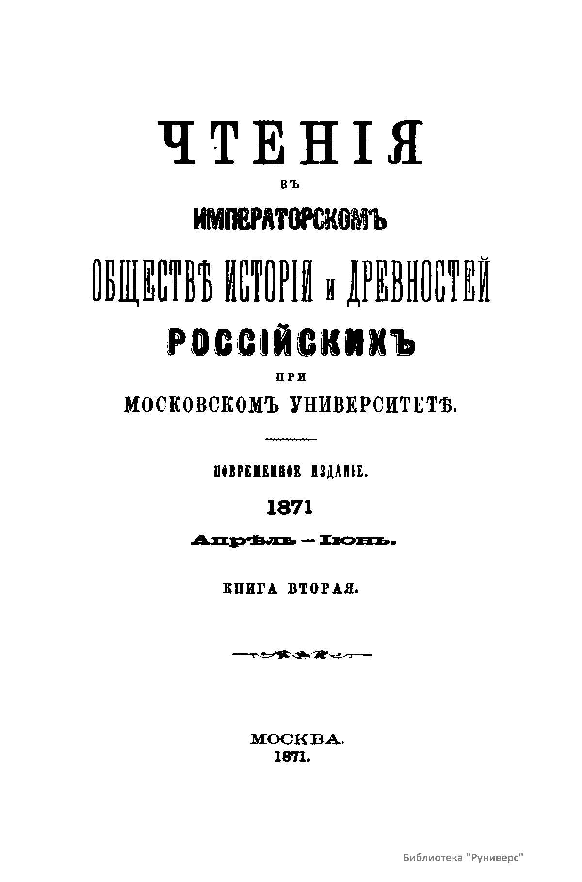 Чтенiя въ Императорскомъ Обществѣ Исторiи и Древностей Россiйскихъ при Московскомъ Университетѣ. 1871. Апрѣль-Iюнь. Книга вторая