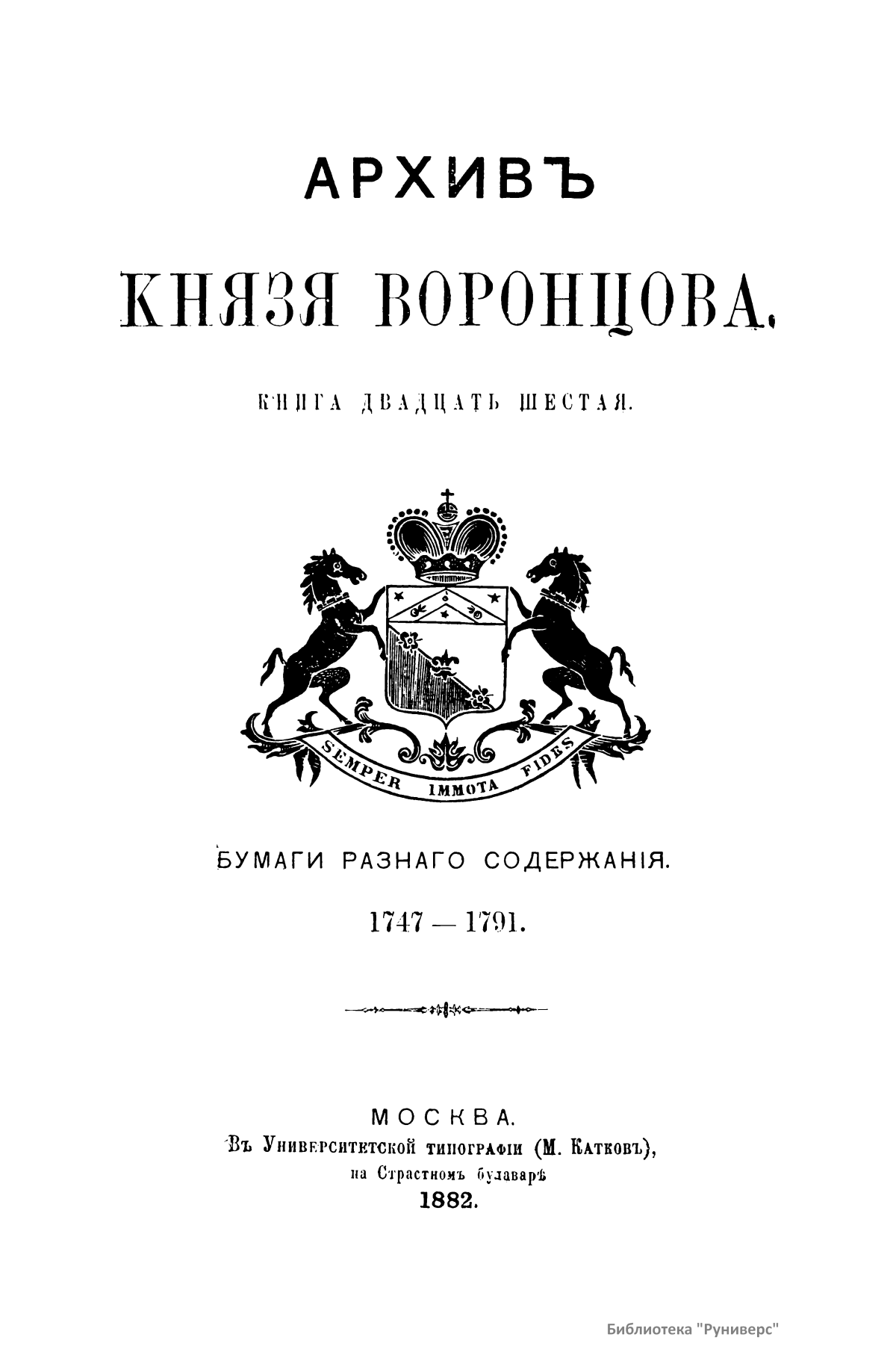 Архивъ Князя Воронцова. Книга двадцать шестая