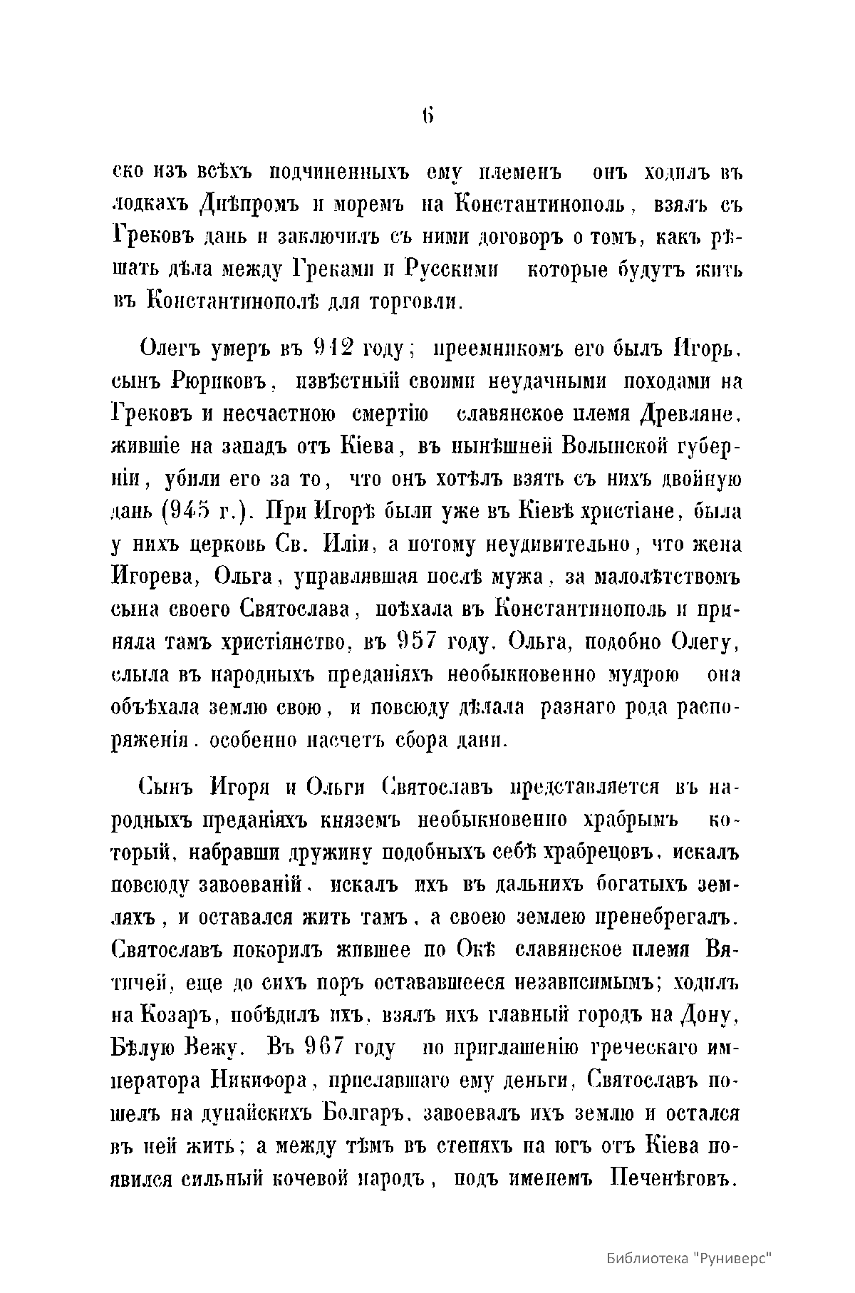 Учебный курс русской истории до царствования императора Александра I. «Соловьев давал слушателю удивительно цельный, стройной нитью проведенныйсквозь цепь обобщенных фактов взгляд на ход русской истории… Настойчиво говорил и повторял он, где нужно, о связи явлений, о последовательности исторического развития, об общих его законах, о том, что называл он необычным словом – историчностью… Чтение Соловьева… не било ни на чувства, ни на воображение, но оно заставляло размышлять». В.О. Ключевский