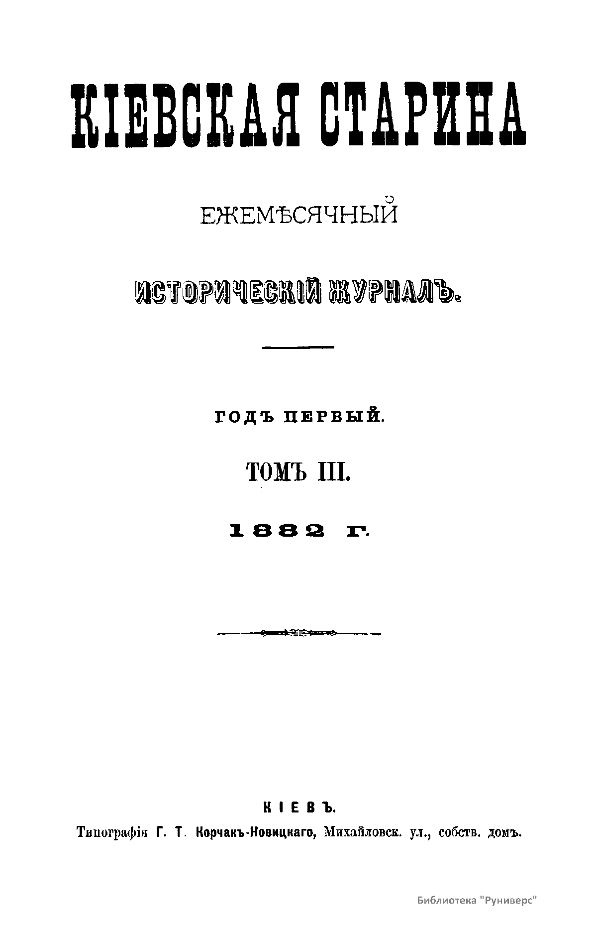 Кiевская старина. Годъ первый. Томъ III. Iюль-Сентябрь 1882 г.