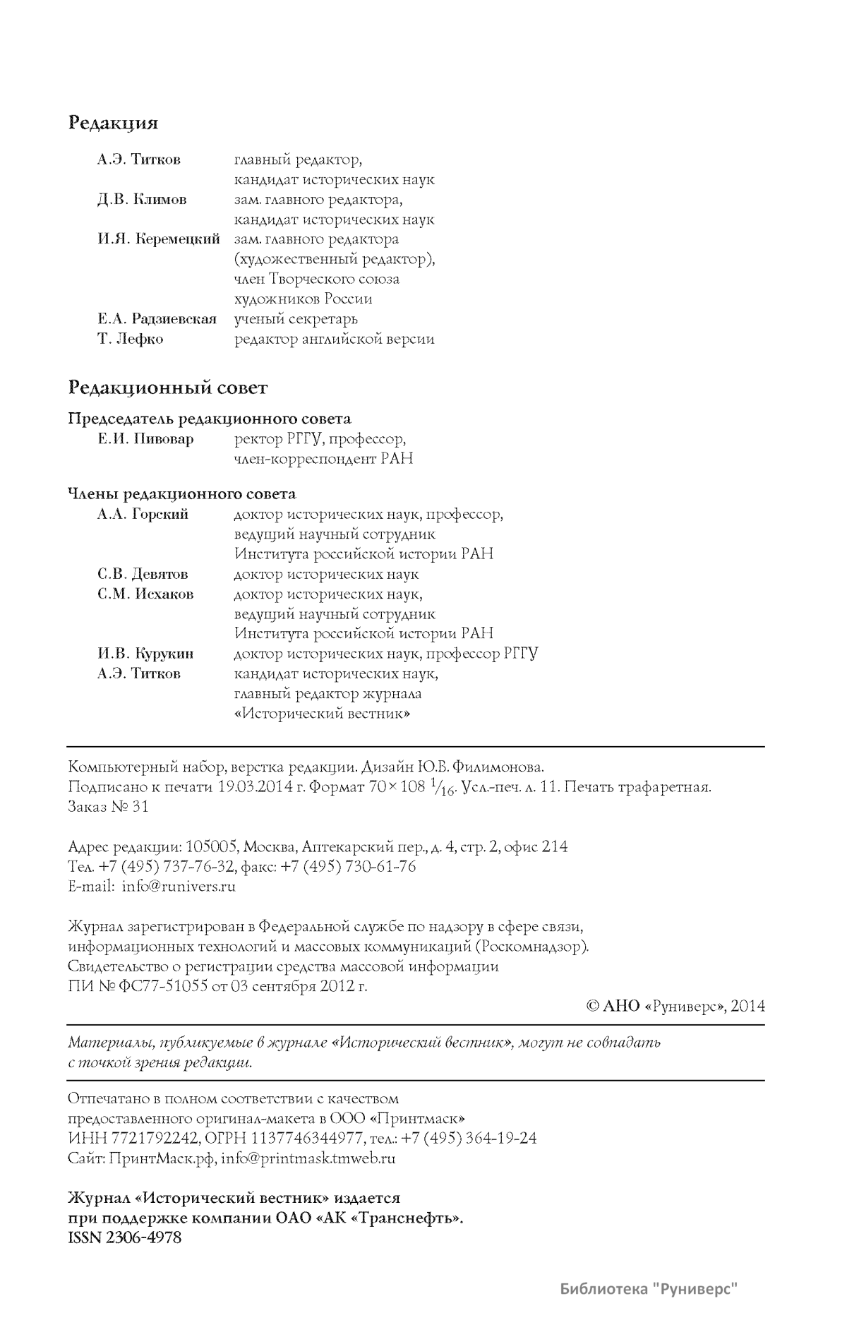 Исторический вестник. Историко-литературный журнал