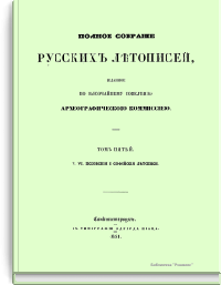 Полное собранiе русскихъ лѣтописей. Томъ пятый. V. VI. Псковкiя и Софийскiя лѣтописи