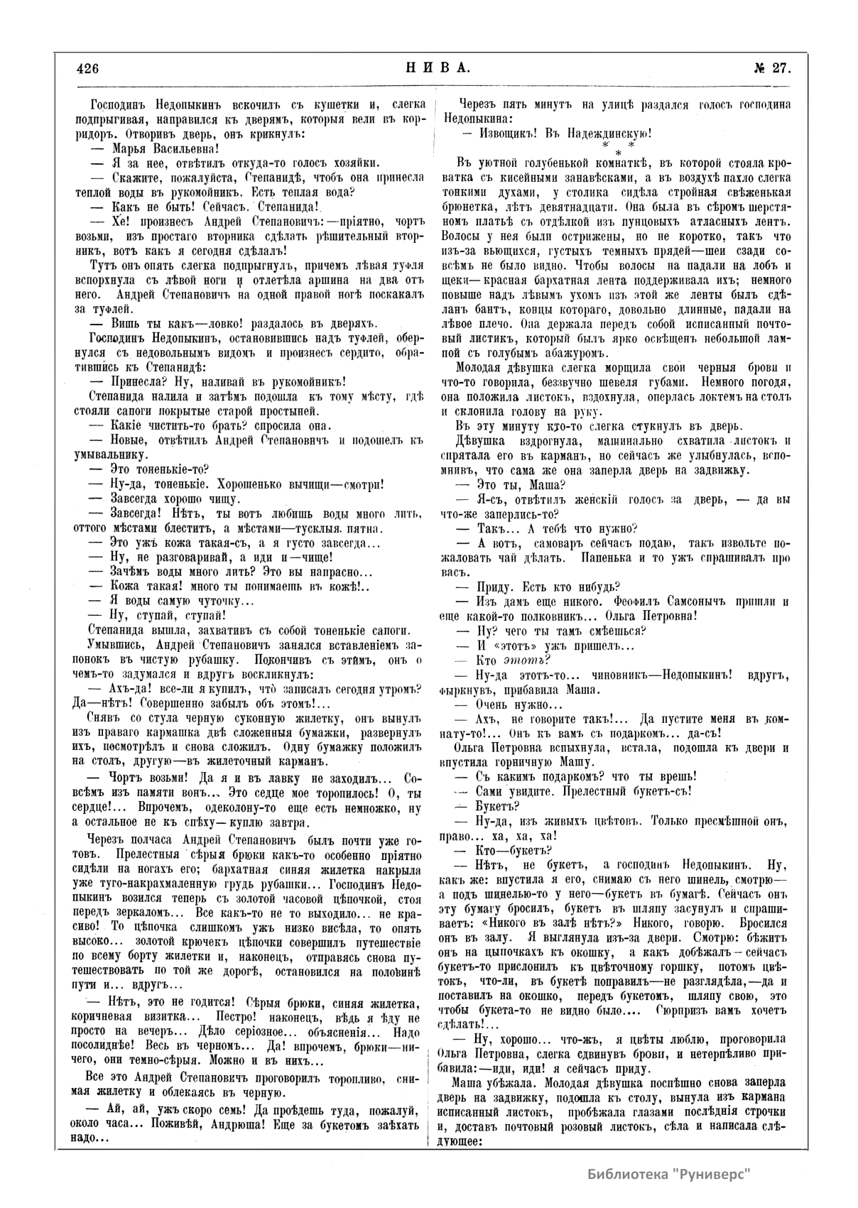 «Нива» — популярный еженедельный русский журнал с приложениями, издававшийся со второй половины XIX до начала XX века, носил подзаголовок «Журнал литературы, политики и современной жизни». Журнал был любимым детищем А. Ф. Маркса, возглавлявшего свое издательство вплоть до своей смерти в 1904 г. Позиционировалась «Нива» как иллюстрированный журнал для семейного чтения и был ориентирован, главным образом, на обывателя. В журнале публиковались литературные произведения, исторические, научно-популярные очерки, репродукции и гравюры картин современных художников. Материалы политического и общественного содержания также сопровождались многочисленными иллюстрациями. Среди известных литераторов, печатавшихся в журнале, были А. К. Толстой, Ф. И. Тютчев, Л. Н. Толстой, А. А. Фет, А. П. Чехов, Максим Горький, Корней Чуковский, Анна Ахматова, Иван Бунин и многие другие. Благодаря «Ниве» сочинения многих современных авторов добрались до самых отдаленных областей России.