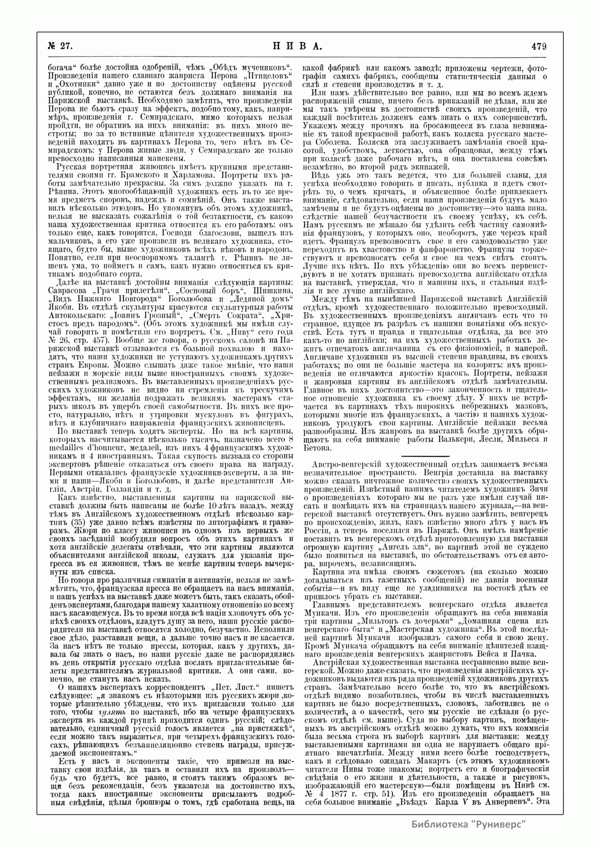«Нива» — популярный еженедельный русский журнал с приложениями, издававшийся со второй половины XIX до начала XX века, носил подзаголовок «Журнал литературы, политики и современной жизни». Журнал был любимым детищем А. Ф. Маркса, возглавлявшего свое издательство вплоть до своей смерти в 1904 г. Позиционировалась «Нива» как иллюстрированный журнал для семейного чтения и был ориентирован, главным образом, на обывателя. В журнале публиковались литературные произведения, исторические, научно-популярные очерки, репродукции и гравюры картин современных художников. Материалы политического и общественного содержания также сопровождались многочисленными иллюстрациями. Среди известных литераторов, печатавшихся в журнале, были А. К. Толстой, Ф. И. Тютчев, Л. Н. Толстой, А. А. Фет, А. П. Чехов, Максим Горький, Корней Чуковский, Анна Ахматова, Иван Бунин и многие другие. Благодаря «Ниве» сочинения многих современных авторов добрались до самых отдаленных областей России.