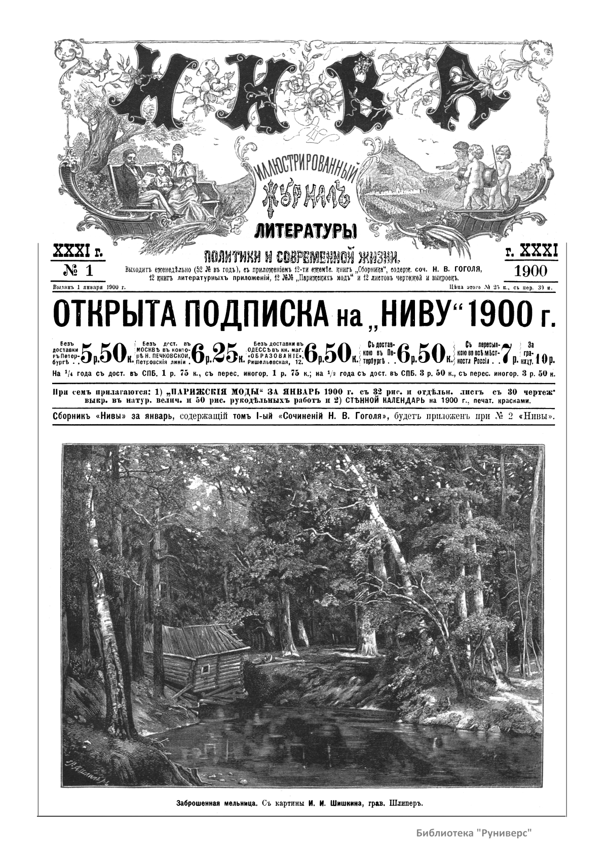 «Нива» — популярный еженедельный русский журнал с приложениями, издававшийся со второй половины XIX до начала XX века, носил подзаголовок «Журнал литературы, политики и современной жизни». Журнал был любимым детищем А. Ф. Маркса, возглавлявшего свое издательство вплоть до своей смерти в 1904 г. Позиционировалась «Нива» как иллюстрированный журнал для семейного чтения и был ориентирован, главным образом, на обывателя. В журнале публиковались литературные произведения, исторические, научно-популярные очерки, репродукции и гравюры картин современных художников. Материалы политического и общественного содержания также сопровождались многочисленными иллюстрациями. Среди известных литераторов, печатавшихся в журнале, были А. К. Толстой, Ф. И. Тютчев, Л. Н. Толстой, А. А. Фет, А. П. Чехов, Максим Горький, Корней Чуковский, Анна Ахматова, Иван Бунин и многие другие. Благодаря «Ниве» сочинения многих современных авторов добрались до самых отдаленных областей России.