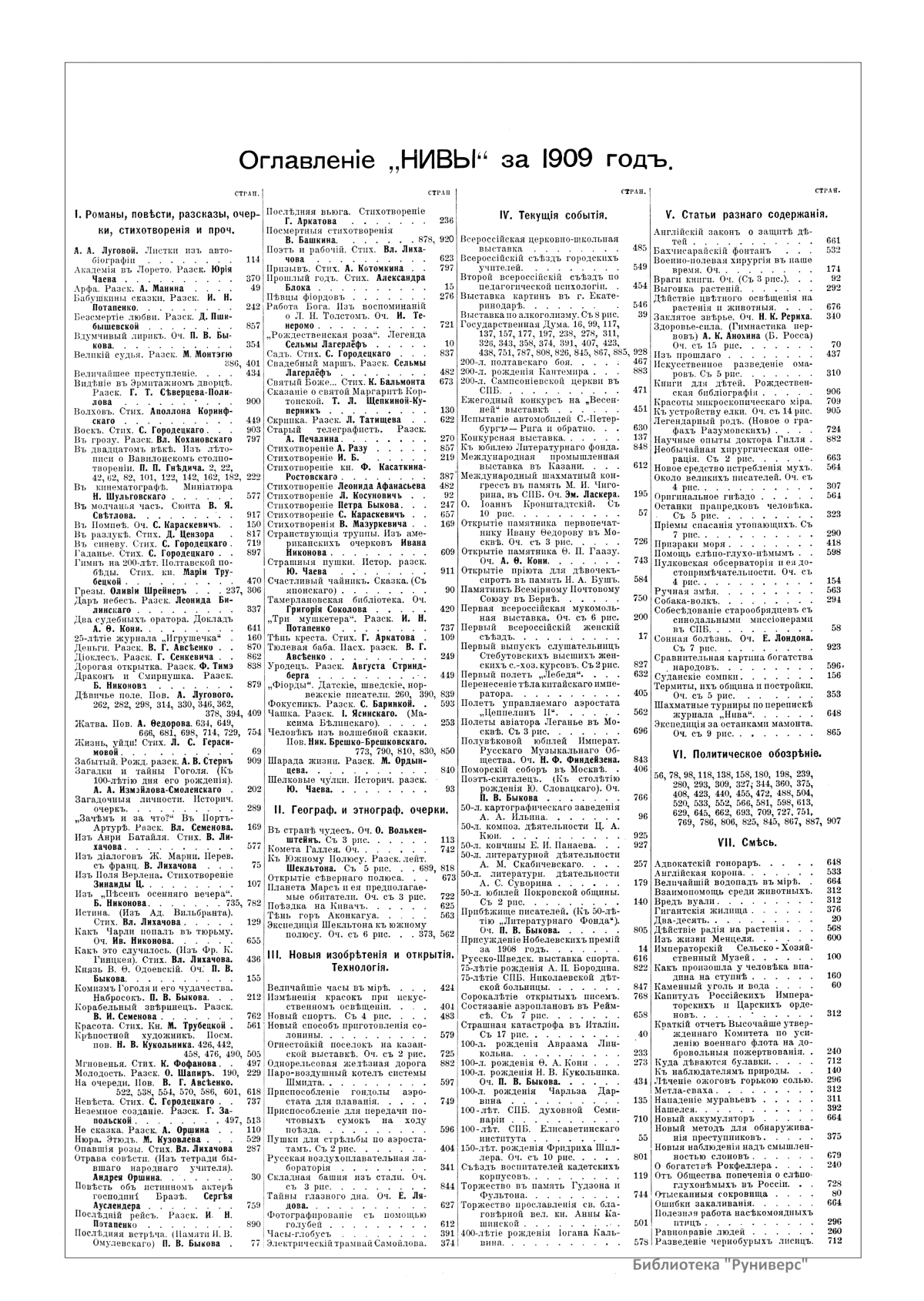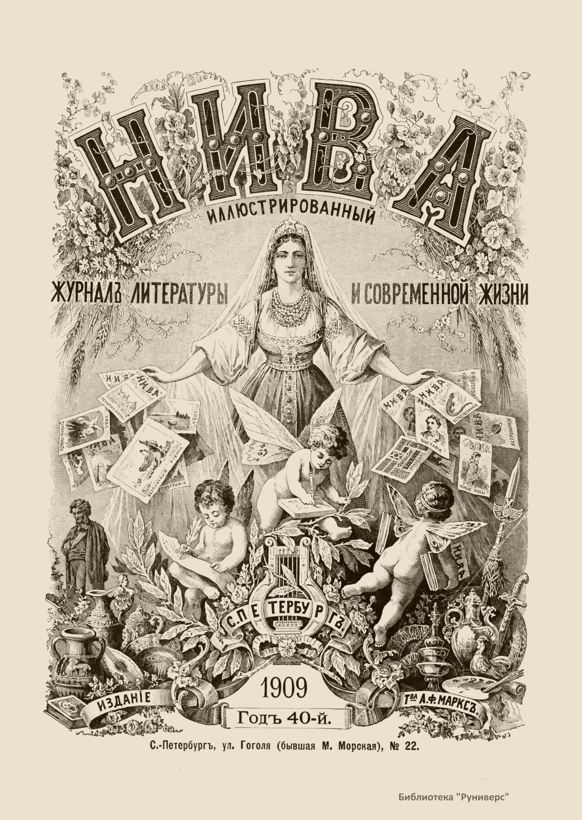«Нива» — популярный еженедельный русский журнал с приложениями, издававшийся со второй половины XIX до начала XX века, носил подзаголовок «Журнал литературы, политики и современной жизни». Журнал был любимым детищем А. Ф. Маркса, возглавлявшего свое издательство вплоть до своей смерти в 1904 г. Позиционировалась «Нива» как иллюстрированный журнал для семейного чтения и был ориентирован, главным образом, на обывателя. В журнале публиковались литературные произведения, исторические, научно-популярные очерки, репродукции и гравюры картин современных художников. Материалы политического и общественного содержания также сопровождались многочисленными иллюстрациями. Среди известных литераторов, печатавшихся в журнале, были А. К. Толстой, Ф. И. Тютчев, Л. Н. Толстой, А. А. Фет, А. П. Чехов, Максим Горький, Корней Чуковский, Анна Ахматова, Иван Бунин и многие другие. Благодаря «Ниве» сочинения многих современных авторов добрались до самых отдаленных областей России.
