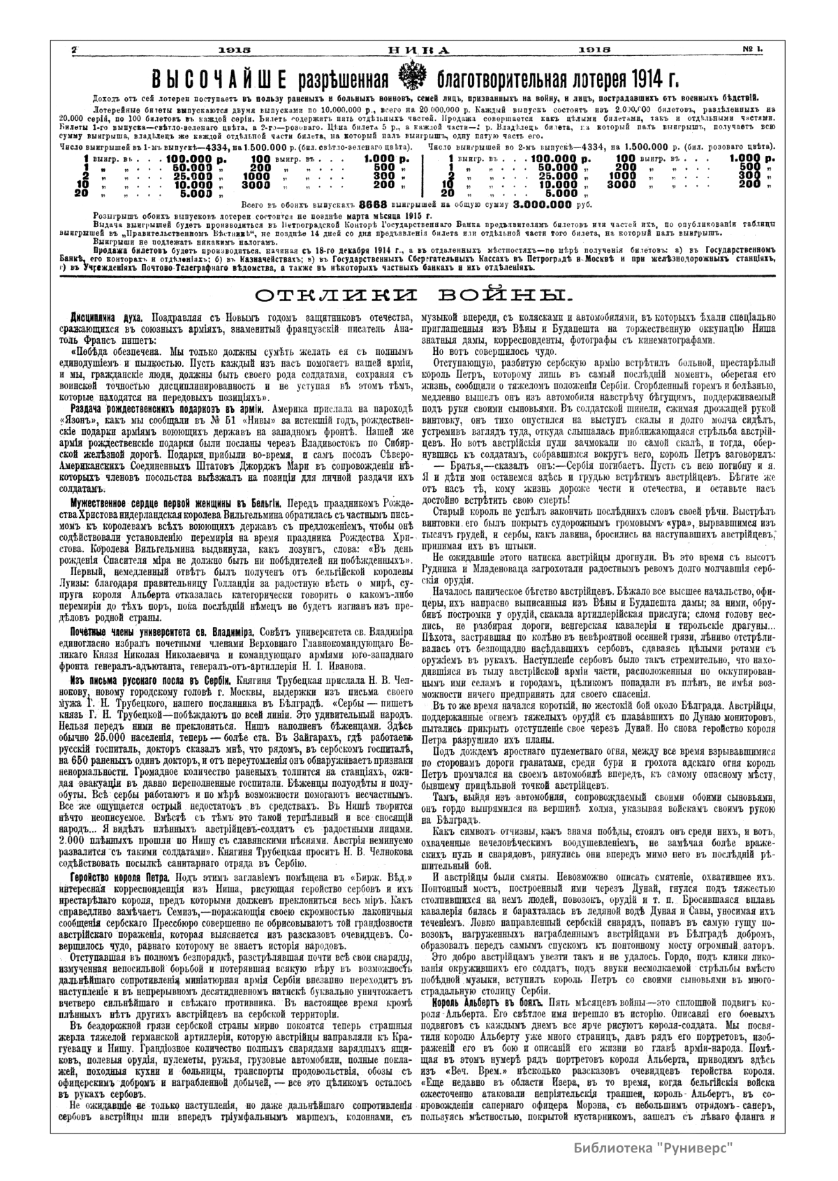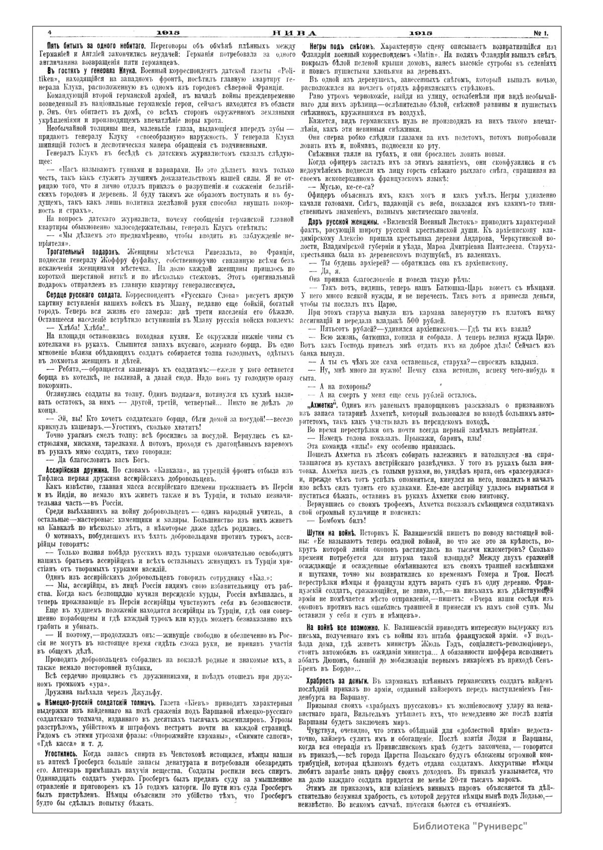 Нива. Годъ XLVI. №1-26. 1915