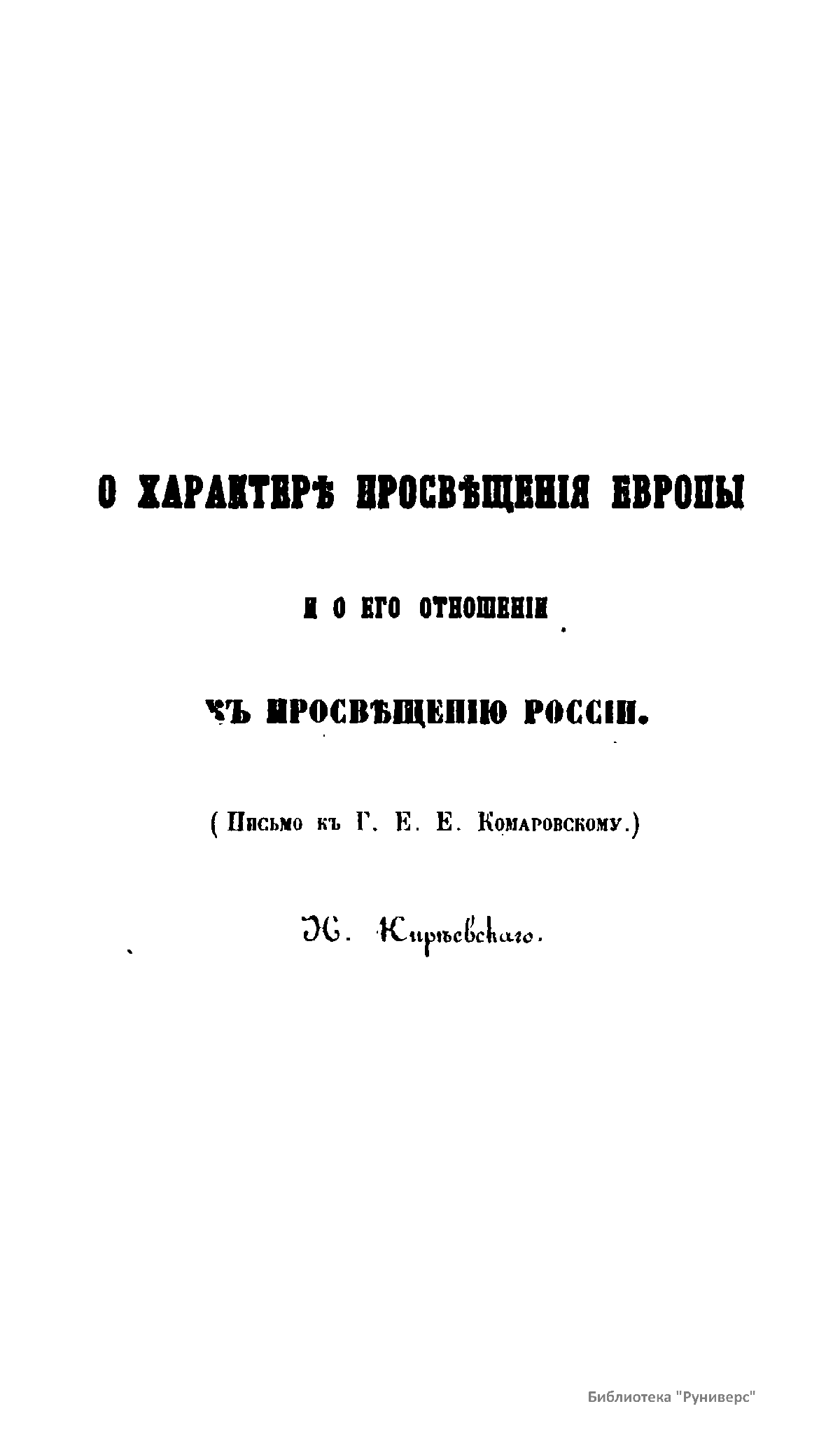 О характерѣ просвѣщенiя Европы и о его отношенiи къ просвѣщенiю Россiи