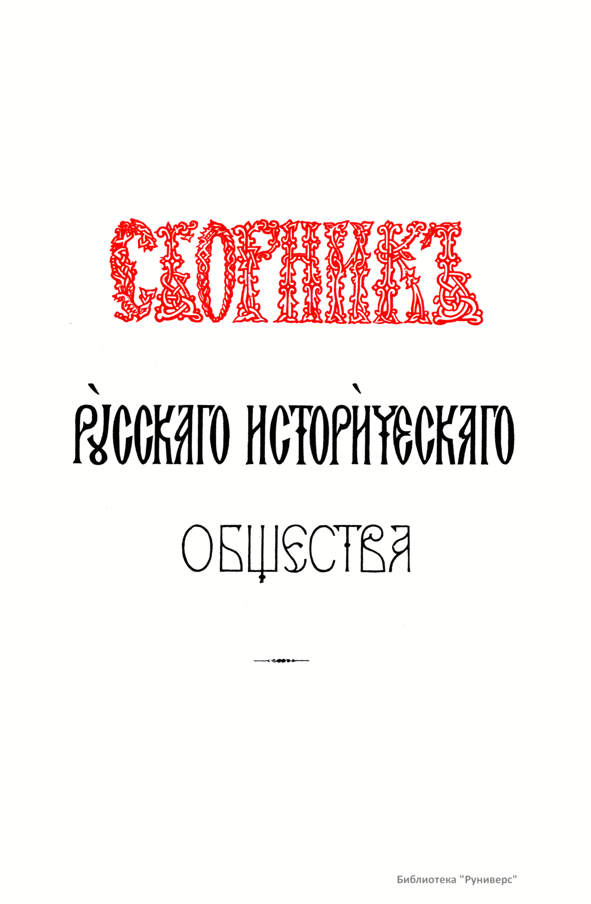 Сборники Русского исторического общества (РИО) – крупнейшая серийная публикация источников по истории России XVIII–XIX веков. За пятьдесят лет существования Общества (1866–1916) было выпущено 148 томов Сборника. Тематика опубликованных в Сборнике материалов обширна и включает в себя документы, относящиеся как к внутренней, так и внешней политике государства. Среди них можно выделить шесть крупных серий: «Материалы по истории Екатерининской комиссии для сочинения проекта нового Уложения 1767 г.», «Бумаги Екатерины II», «Материалы для истории высших государственных учреждений России в XVIII в.», «Материалы для политической и бытовой истории в 1812 г.», «Дипломатическая переписка иностранных послов и посланников при русском дворе», «Памятники дипломатических отношений древней России с державами иностранными», включающие документы XV–XVII веков, перешедшие в РИО от Второго отделения императорской канцелярии. Помимо этих серий в Сборнике публиковались личные бумаги Петра I, Петра II, Екатерины I, Александра I, Николая I, Александра II, а также документы, связанные с деятельностью видных государственных сановников. В Сборнике выходили отчёты о годичных собраниях РИО. Во время подготовки издания Русского биографического словаря в томах 60 и 62 был помещён Азбучный указатель имён русских деятелей для словаря. Основная работа по подготовке издания Сборника лежала на ответственных секретарях РИО. Первым таким секретарём стал один из наиболее деятельных организаторов Общества А. А. Половцев. В разное время в работе Общества принимали участие крупные историки: С. М. Соловьёв, В. О. Ключевский, Н. И. Костомаров, Н. Ф. Дубровин, П. П. Пекарский, В. И. Сергеевич, Я. К. Грот, А. Н. Филиппов, И. Е. Забелин, А. Н. Пыпин, С. Ф. Платонов, В. С. Иконников, Н. Д. Чечулин, А. Н. Попов.