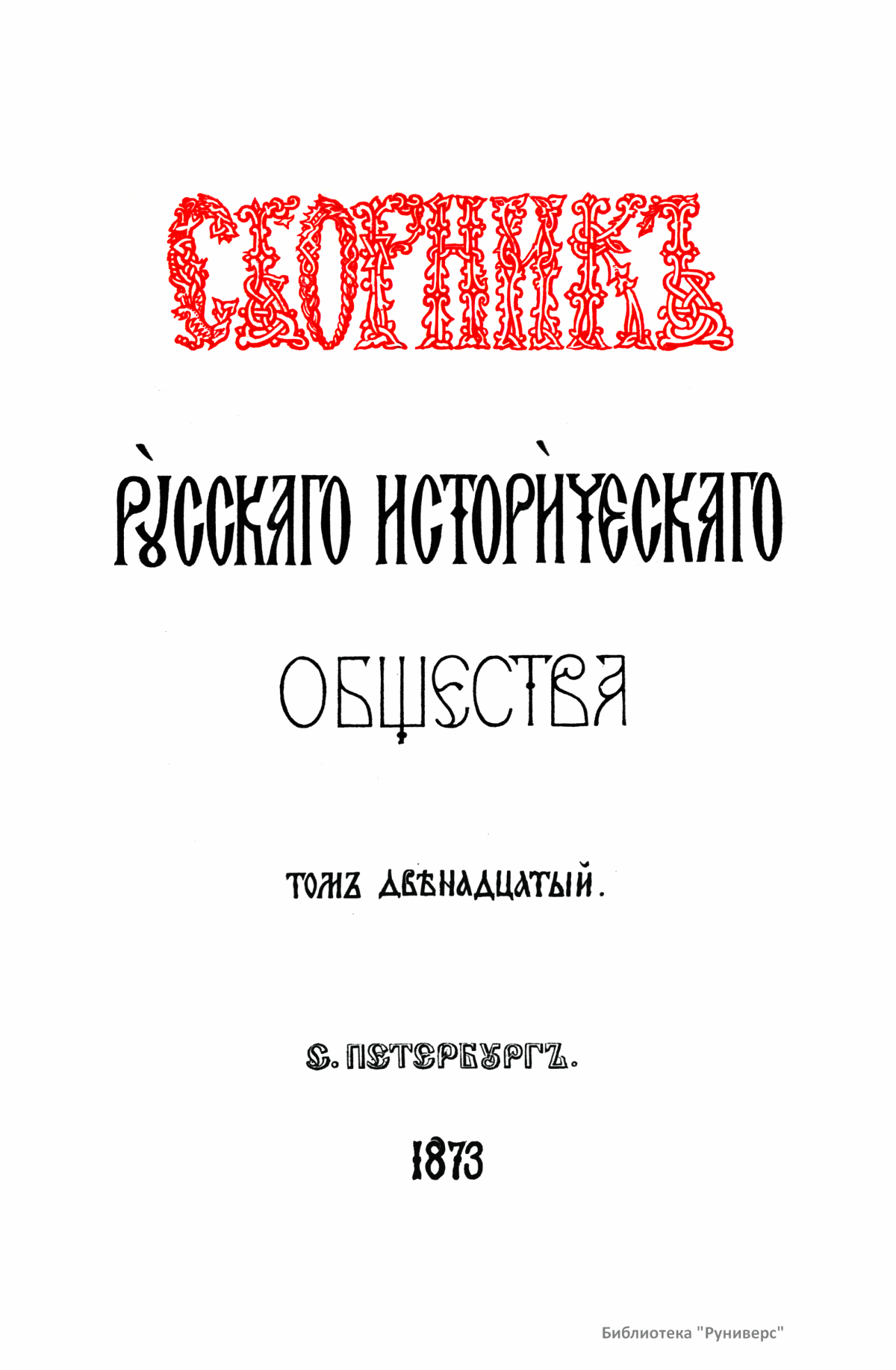 Сборникъ Русскаго историческаго общества. Томъ двѣнадцатый
