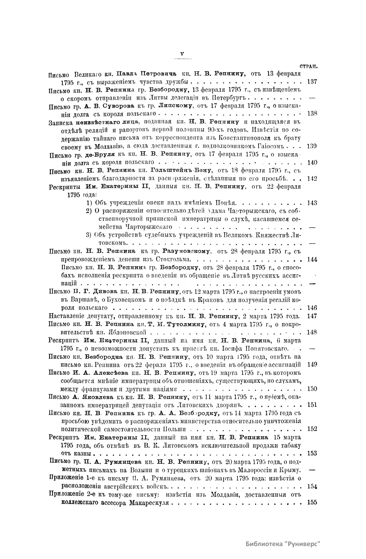 Сборники Русского исторического общества (РИО) – крупнейшая серийная публикация источников по истории России XVIII–XIX веков. За пятьдесят лет существования Общества (1866–1916) было выпущено 148 томов Сборника. Тематика опубликованных в Сборнике материалов обширна и включает в себя документы, относящиеся как к внутренней, так и внешней политике государства. Среди них можно выделить шесть крупных серий: «Материалы по истории Екатерининской комиссии для сочинения проекта нового Уложения 1767 г.», «Бумаги Екатерины II», «Материалы для истории высших государственных учреждений России в XVIII в.», «Материалы для политической и бытовой истории в 1812 г.», «Дипломатическая переписка иностранных послов и посланников при русском дворе», «Памятники дипломатических отношений древней России с державами иностранными», включающие документы XV–XVII веков, перешедшие в РИО от Второго отделения императорской канцелярии. Помимо этих серий в Сборнике публиковались личные бумаги Петра I, Петра II, Екатерины I, Александра I, Николая I, Александра II, а также документы, связанные с деятельностью видных государственных сановников. В Сборнике выходили отчёты о годичных собраниях РИО. Во время подготовки издания Русского биографического словаря в томах 60 и 62 был помещён Азбучный указатель имён русских деятелей для словаря. Основная работа по подготовке издания Сборника лежала на ответственных секретарях РИО. Первым таким секретарём стал один из наиболее деятельных организаторов Общества А. А. Половцев. В разное время в работе Общества принимали участие крупные историки: С. М. Соловьёв, В. О. Ключевский, Н. И. Костомаров, Н. Ф. Дубровин, П. П. Пекарский, В. И. Сергеевич, Я. К. Грот, А. Н. Филиппов, И. Е. Забелин, А. Н. Пыпин, С. Ф. Платонов, В. С. Иконников, Н. Д. Чечулин, А. Н. Попов.