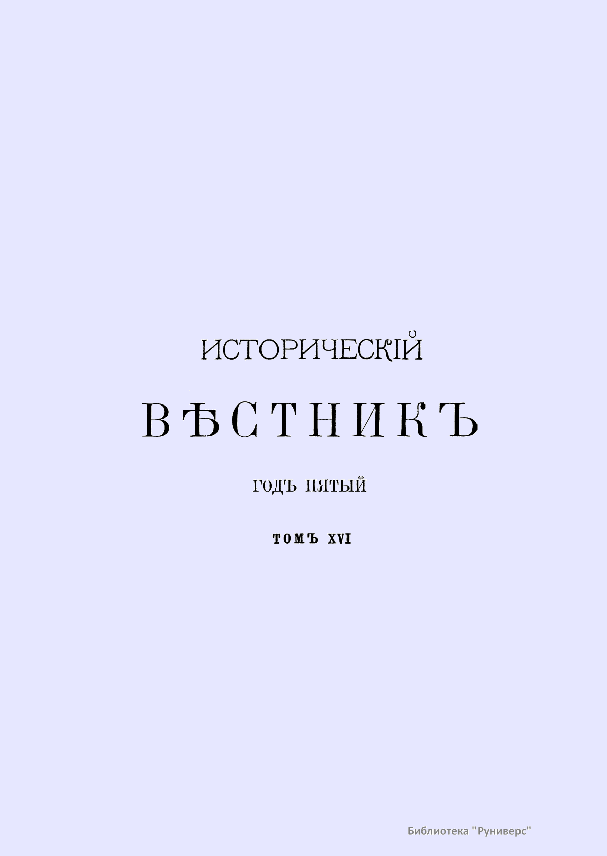 Исторический вестник. Историко-литературный журнал. Том XVI