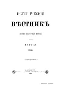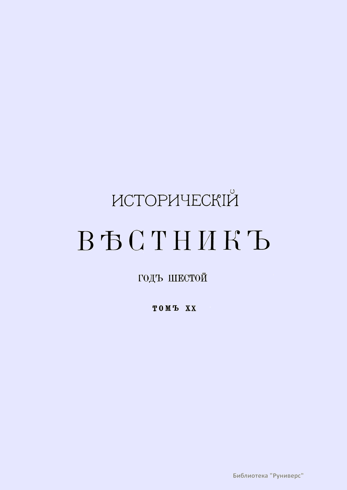 Историческiй вѣстникъ. Историко-литературный журналъ. Томъ XX
