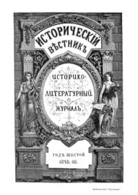 «Исторический вестник» - русский ежемесячный историко-литературный журнал. Издавался в Санкт-Петербурге с 1880-го по 1917 г. Журнал был основан А.С. Сувориным и С.Н. Шубинским с целью «знакомить читателей в живой, общедоступной форме с современным состоянием исторической науки и литературы в России и Европе». Вышло 150 тт. Каждый том состоял из трёх ежемесячных выпусков, имел свою нумерацию страниц, оглавление, список иллюстраций. Журнал приобрёл устойчивую популярность среди читателей, заняв прочное место в «триумвирате» русских исторических журналов наряду с «Русским архивом» и «Русской стариной». опережая их по количеству подписчиков. Отличием «Исторического вестника» было то, что он не помещал на своих страницах необработанных, сырых материалов. С другой стороны, журнал приближался по своему типу к журналам общелитературного образца, сочетая в себе коммерческий успех и доступное изложение материала.
