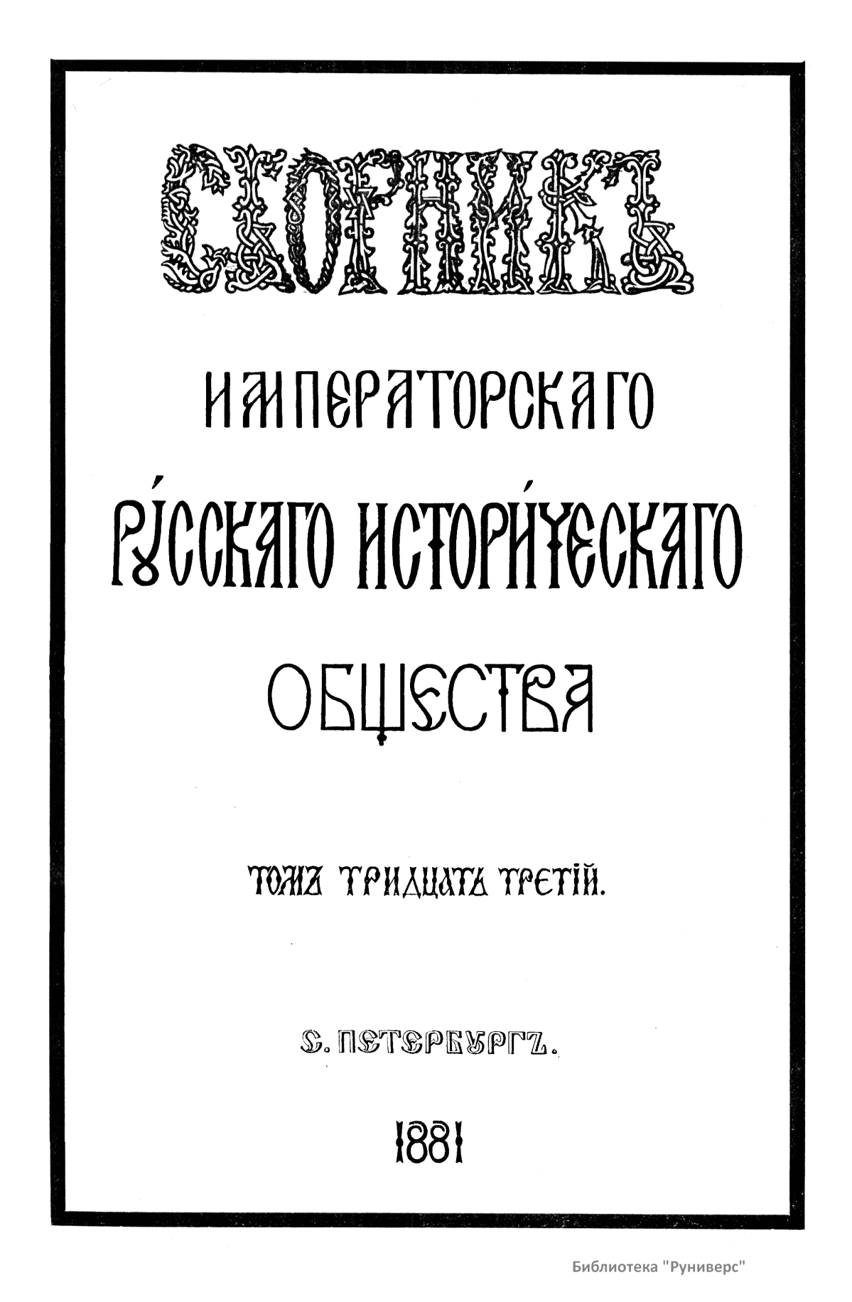 Сборникъ Русскаго историческаго общества. Томъ тридцать третiй