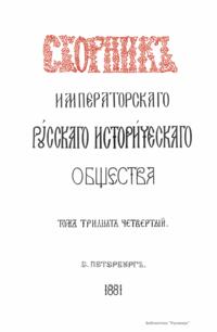 Сборникъ Русскаго историческаго общества. Томъ тридцать четвертый