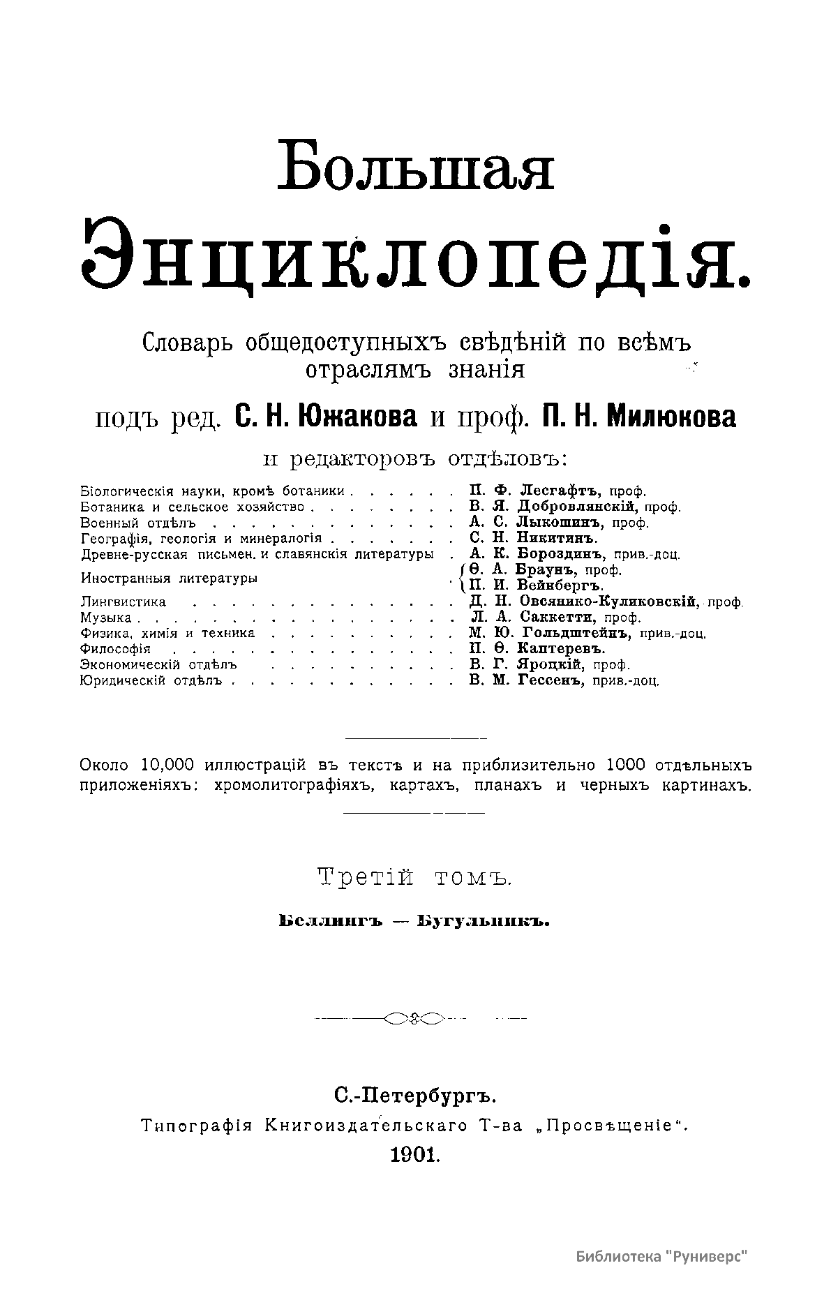 Большая Энциклопедiя. Третiй том. Беллингъ - Бугульникъ