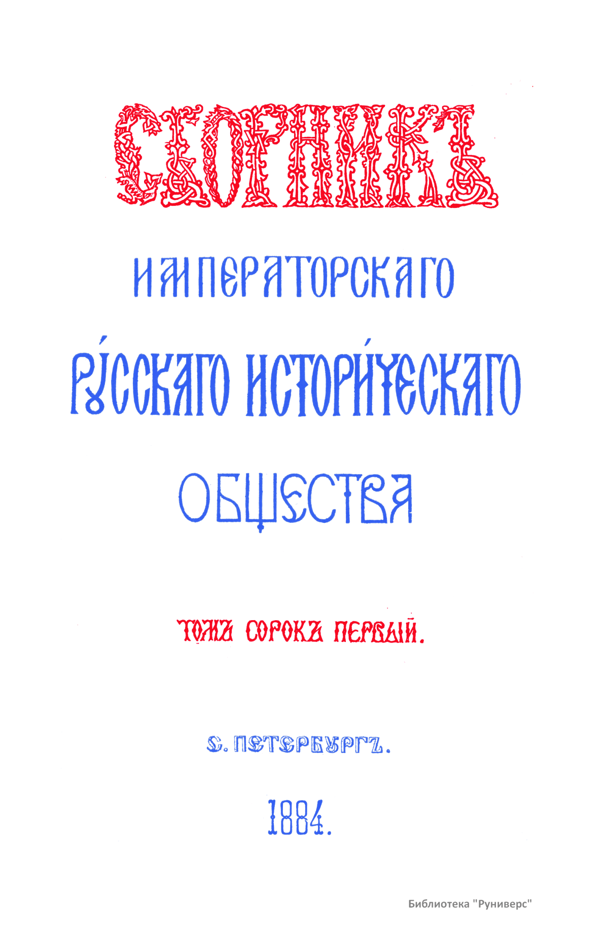 Сборникъ Русскаго историческаго общества. Томъ сорокъ первый