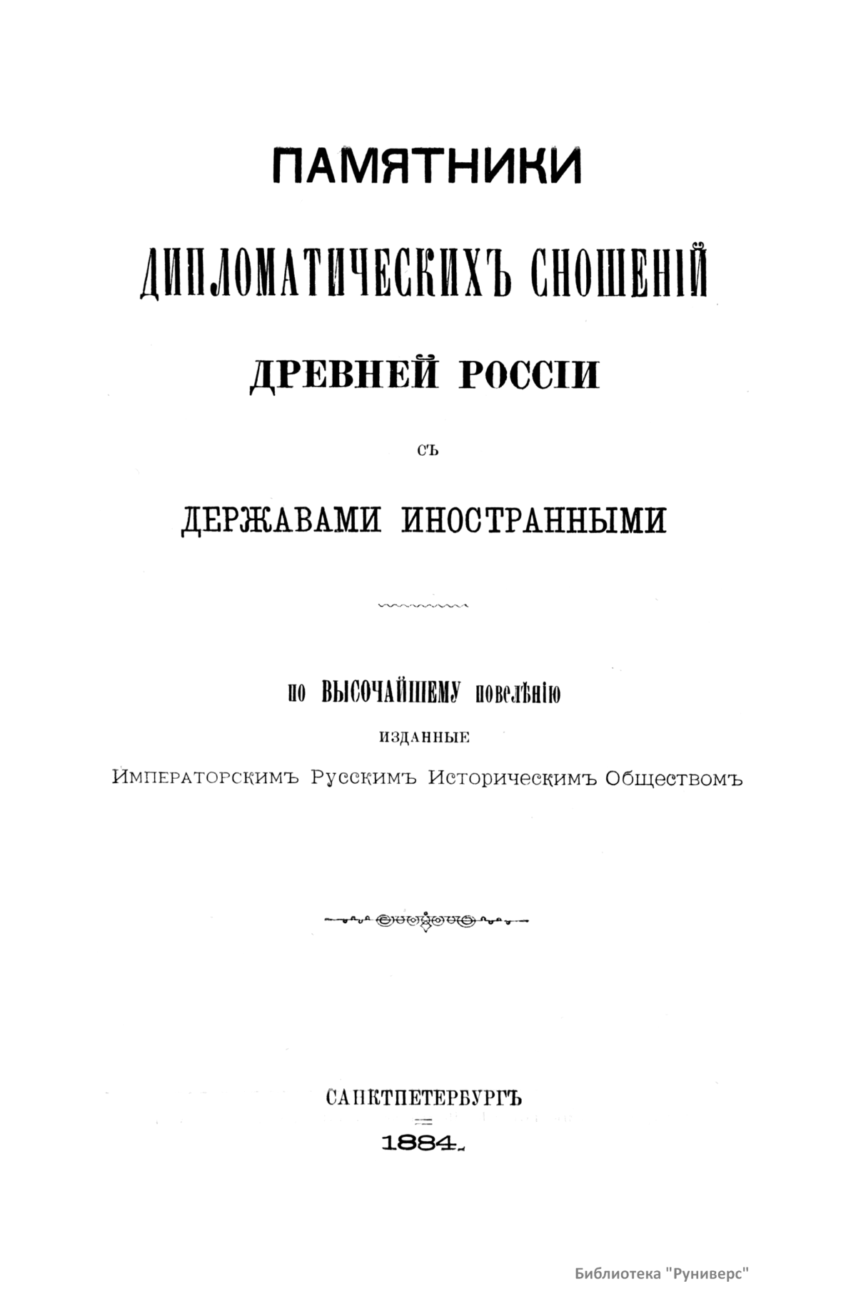 Сборники Русского исторического общества (РИО) – крупнейшая серийная публикация источников по истории России XVIII–XIX веков. За пятьдесят лет существования Общества (1866–1916) было выпущено 148 томов Сборника. Тематика опубликованных в Сборнике материалов обширна и включает в себя документы, относящиеся как к внутренней, так и внешней политике государства. Среди них можно выделить шесть крупных серий: «Материалы по истории Екатерининской комиссии для сочинения проекта нового Уложения 1767 г.», «Бумаги Екатерины II», «Материалы для истории высших государственных учреждений России в XVIII в.», «Материалы для политической и бытовой истории в 1812 г.», «Дипломатическая переписка иностранных послов и посланников при русском дворе», «Памятники дипломатических отношений древней России с державами иностранными», включающие документы XV–XVII веков, перешедшие в РИО от Второго отделения императорской канцелярии. Помимо этих серий в Сборнике публиковались личные бумаги Петра I, Петра II, Екатерины I, Александра I, Николая I, Александра II, а также документы, связанные с деятельностью видных государственных сановников. В Сборнике выходили отчёты о годичных собраниях РИО. Во время подготовки издания Русского биографического словаря в томах 60 и 62 был помещён Азбучный указатель имён русских деятелей для словаря. Основная работа по подготовке издания Сборника лежала на ответственных секретарях РИО. Первым таким секретарём стал один из наиболее деятельных организаторов Общества А. А. Половцев. В разное время в работе Общества принимали участие крупные историки: С. М. Соловьёв, В. О. Ключевский, Н. И. Костомаров, Н. Ф. Дубровин, П. П. Пекарский, В. И. Сергеевич, Я. К. Грот, А. Н. Филиппов, И. Е. Забелин, А. Н. Пыпин, С. Ф. Платонов, В. С. Иконников, Н. Д. Чечулин, А. Н. Попов.