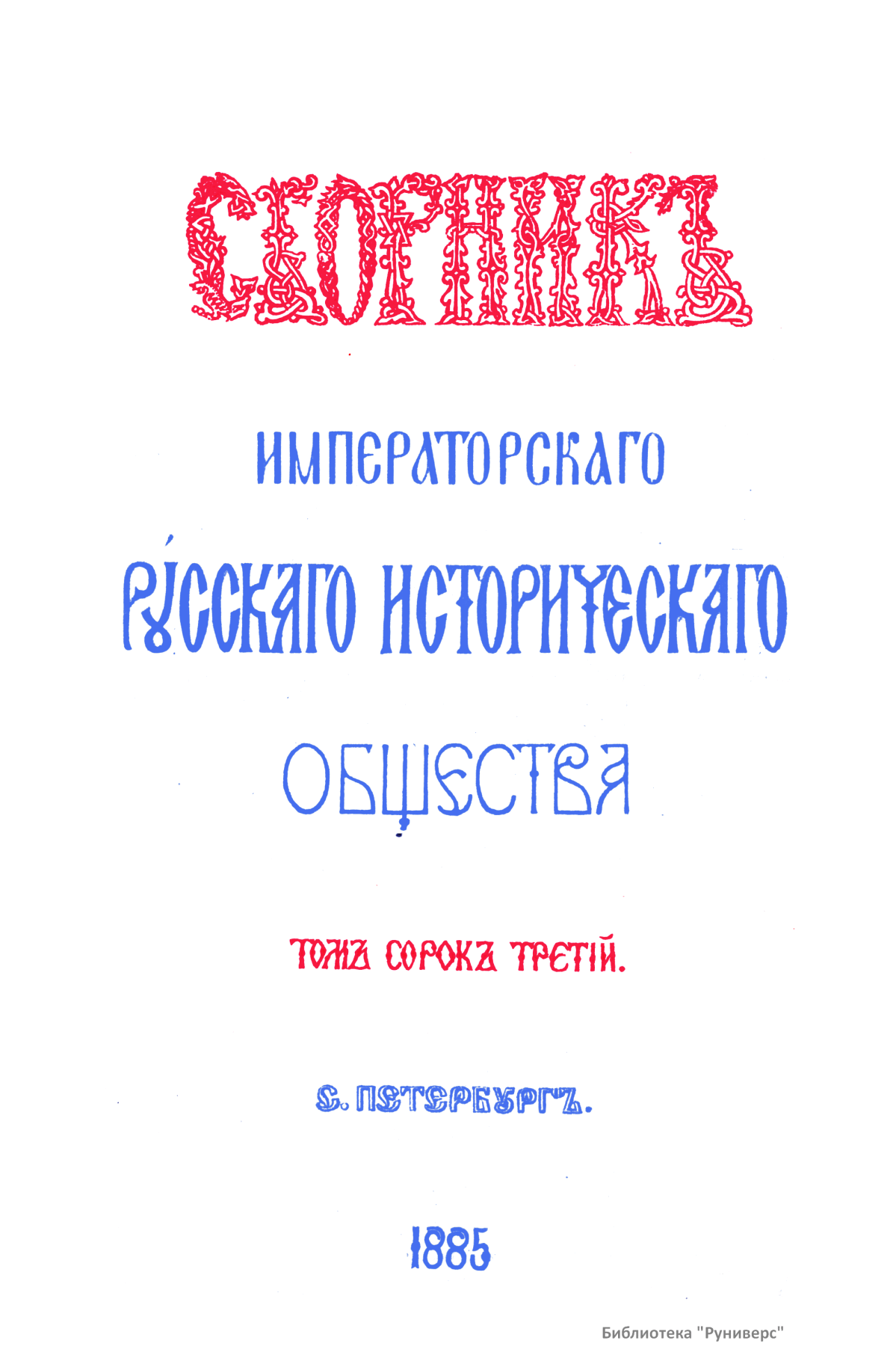 Сборникъ Русскаго историческаго общества. Томъ сорокъ третiй