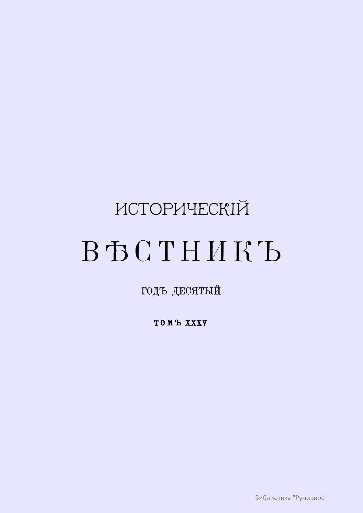 Историческiй вѣстникъ. Историко-литературный журналъ. Томъ XXXV