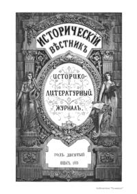 «Исторический вестник» - русский ежемесячный историко-литературный журнал. Издавался в Санкт-Петербурге с 1880-го по 1917 г. Журнал был основан А.С. Сувориным и С.Н. Шубинским с целью «знакомить читателей в живой, общедоступной форме с современным состоянием исторической науки и литературы в России и Европе». Вышло 150 тт. Каждый том состоял из трёх ежемесячных выпусков, имел свою нумерацию страниц, оглавление, список иллюстраций. Журнал приобрёл устойчивую популярность среди читателей, заняв прочное место в «триумвирате» русских исторических журналов наряду с «Русским архивом» и «Русской стариной». опережая их по количеству подписчиков. Отличием «Исторического вестника» было то, что он не помещал на своих страницах необработанных, сырых материалов. С другой стороны, журнал приближался по своему типу к журналам общелитературного образца, сочетая в себе коммерческий успех и доступное изложение материала.