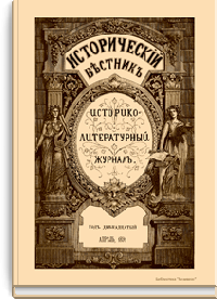«Исторический вестник» - русский ежемесячный историко-литературный журнал. Издавался в Санкт-Петербурге с 1880-го по 1917 г. Журнал был основан А.С. Сувориным и С.Н. Шубинским с целью «знакомить читателей в живой, общедоступной форме с современным состоянием исторической науки и литературы в России и Европе». Вышло 150 тт. Каждый том состоял из трёх ежемесячных выпусков, имел свою нумерацию страниц, оглавление, список иллюстраций. Журнал приобрёл устойчивую популярность среди читателей, заняв прочное место в «триумвирате» русских исторических журналов наряду с «Русским архивом» и «Русской стариной». опережая их по количеству подписчиков. Отличием «Исторического вестника» было то, что он не помещал на своих страницах необработанных, сырых материалов. С другой стороны, журнал приближался по своему типу к журналам общелитературного образца, сочетая в себе коммерческий успех и доступное изложение материала.