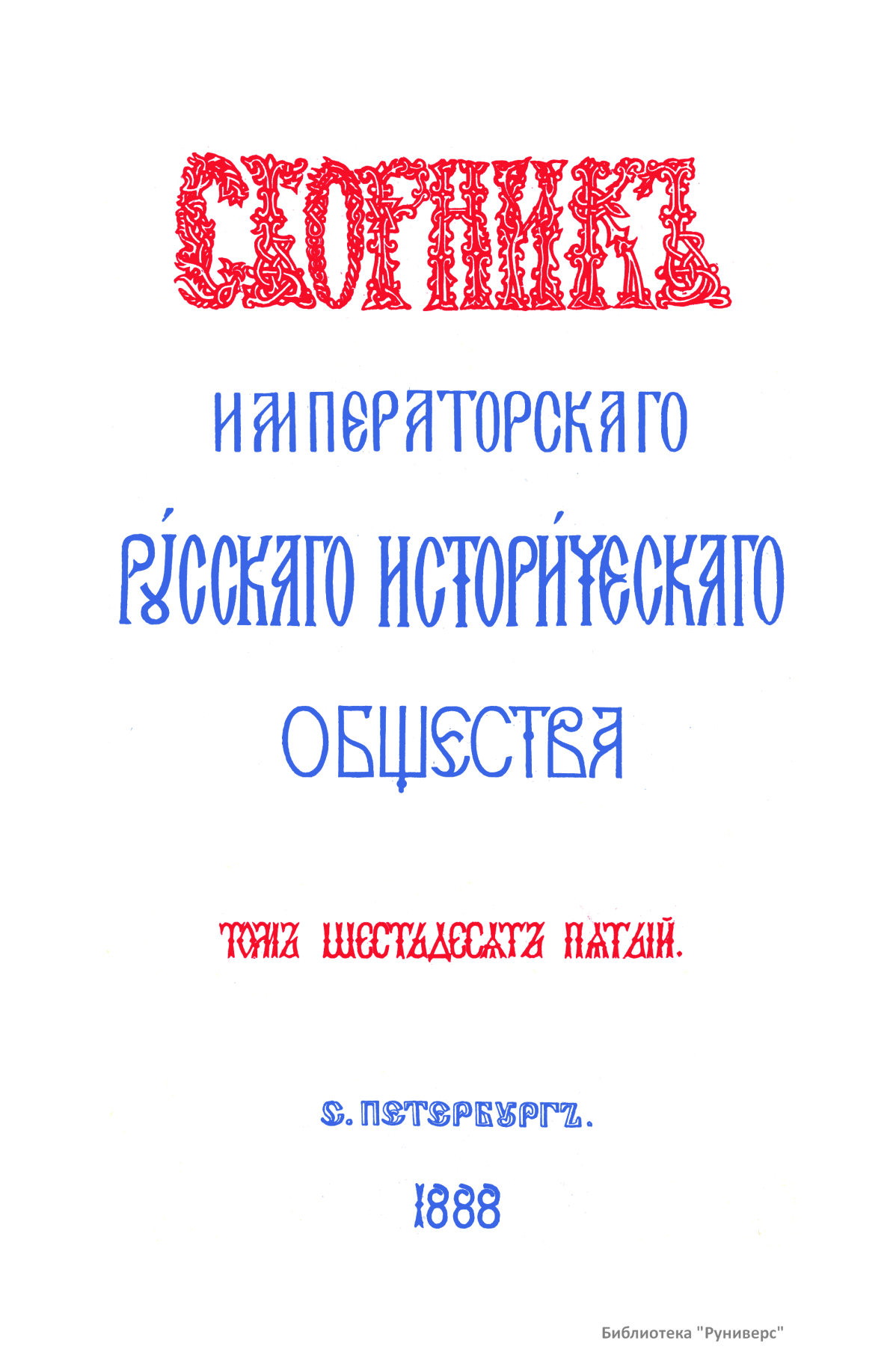 Сборникъ Русскаго историческаго общества. Томъ шестьдесятъ пятый