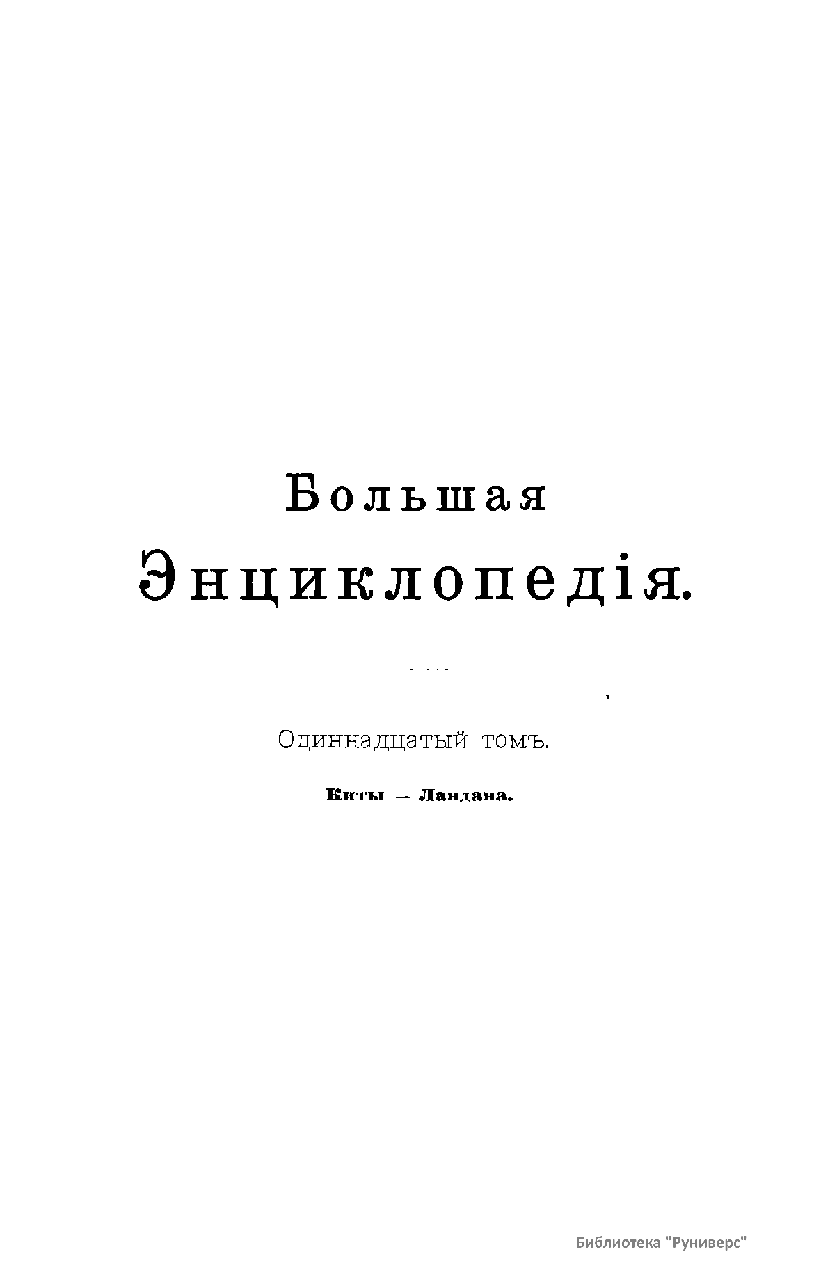 Большая Энциклопедiя. Одиннадцатый томъ. Киты - Ландана