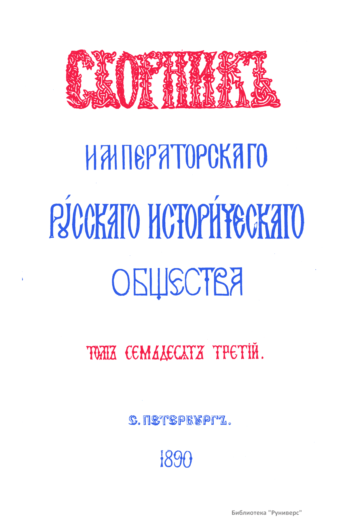 Сборникъ Русскаго историческаго общества. Томъ семьдесятъ третiй