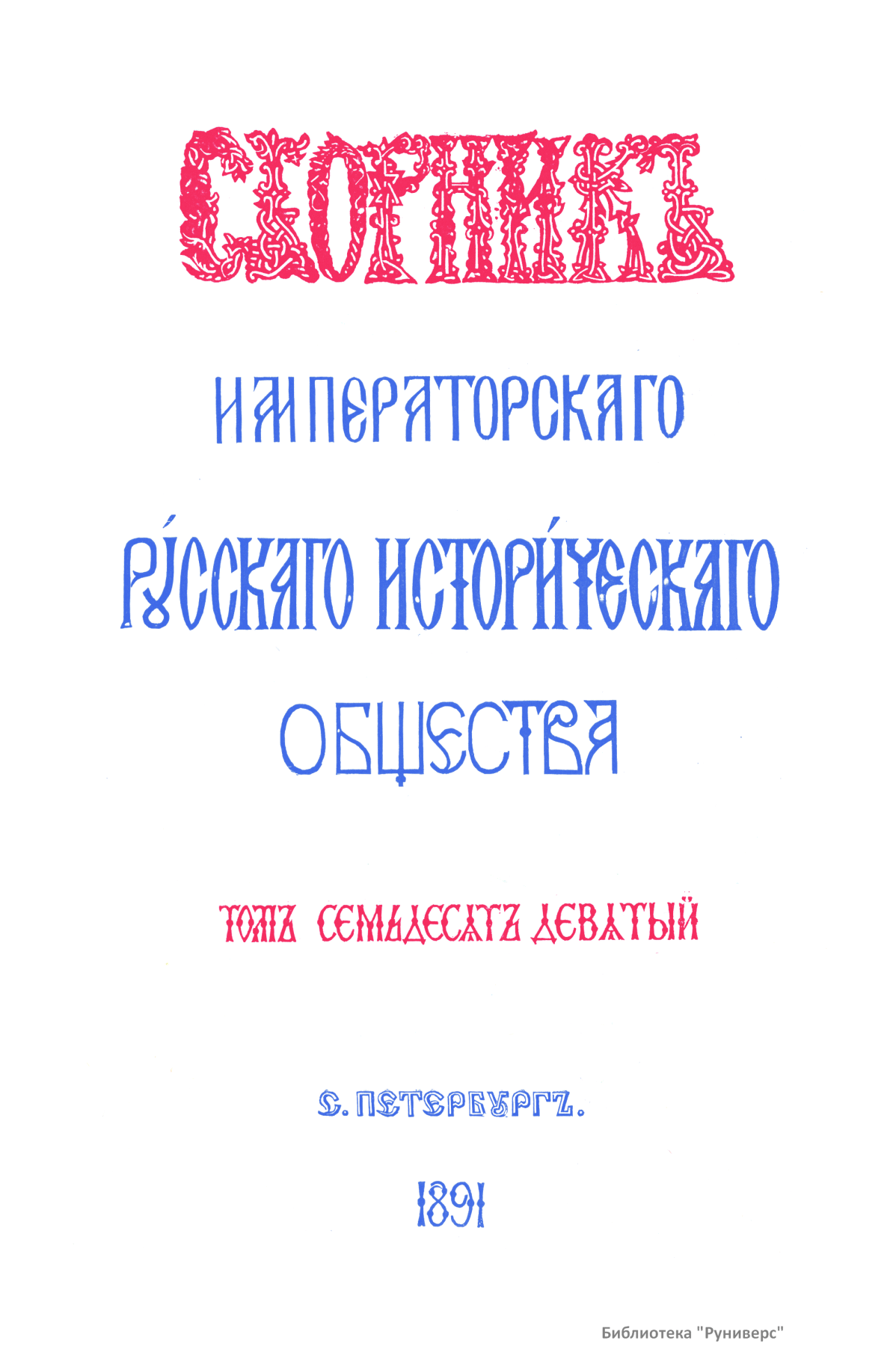 Сборникъ Русскаго историческаго общества. Томъ семьдесятъ девятый