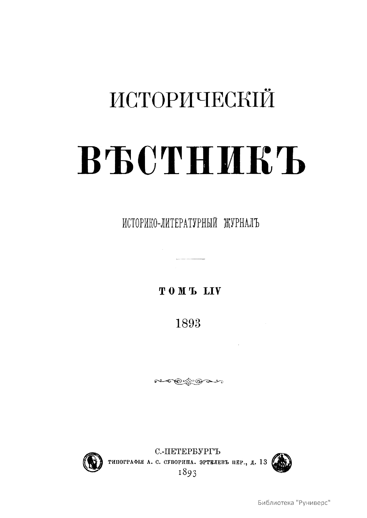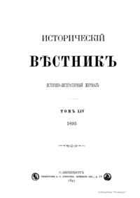 Исторический вестник. Историко-литературный журнал. Том LIV