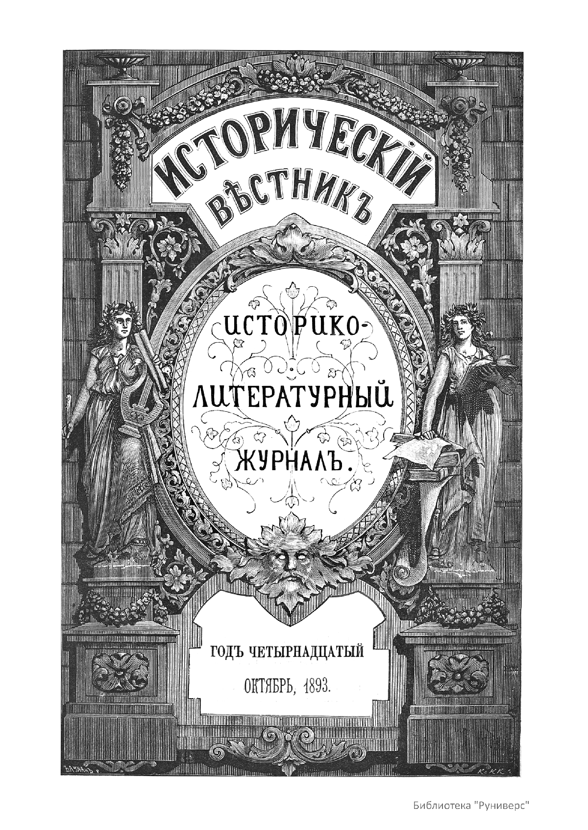 «Исторический вестник» - русский ежемесячный историко-литературный журнал. Издавался в Санкт-Петербурге с 1880-го по 1917 г. Журнал был основан А.С. Сувориным и С.Н. Шубинским с целью «знакомить читателей в живой, общедоступной форме с современным состоянием исторической науки и литературы в России и Европе». Вышло 150 тт. Каждый том состоял из трёх ежемесячных выпусков, имел свою нумерацию страниц, оглавление, список иллюстраций. Журнал приобрёл устойчивую популярность среди читателей, заняв прочное место в «триумвирате» русских исторических журналов наряду с «Русским архивом» и «Русской стариной». опережая их по количеству подписчиков. Отличием «Исторического вестника» было то, что он не помещал на своих страницах необработанных, сырых материалов. С другой стороны, журнал приближался по своему типу к журналам общелитературного образца, сочетая в себе коммерческий успех и доступное изложение материала.