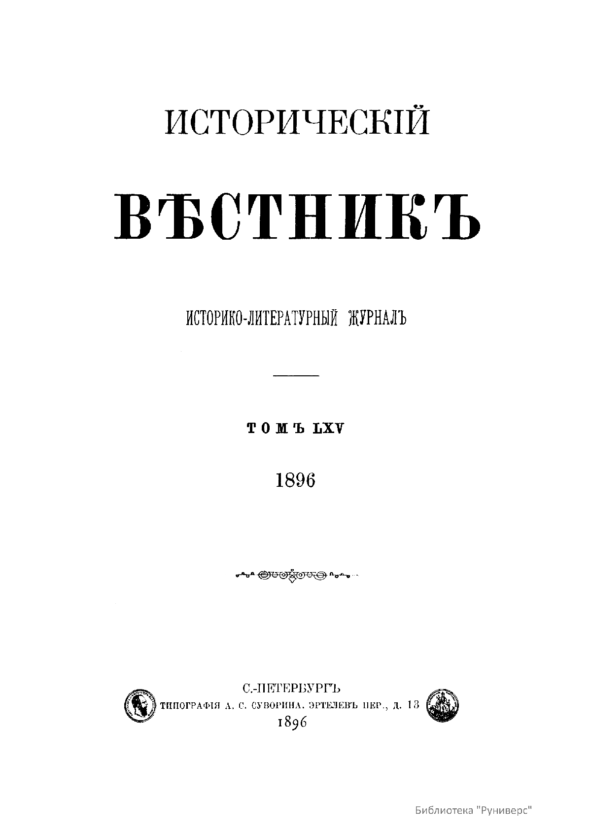 Исторический вестник. Историко-литературный журнал. Том LXV