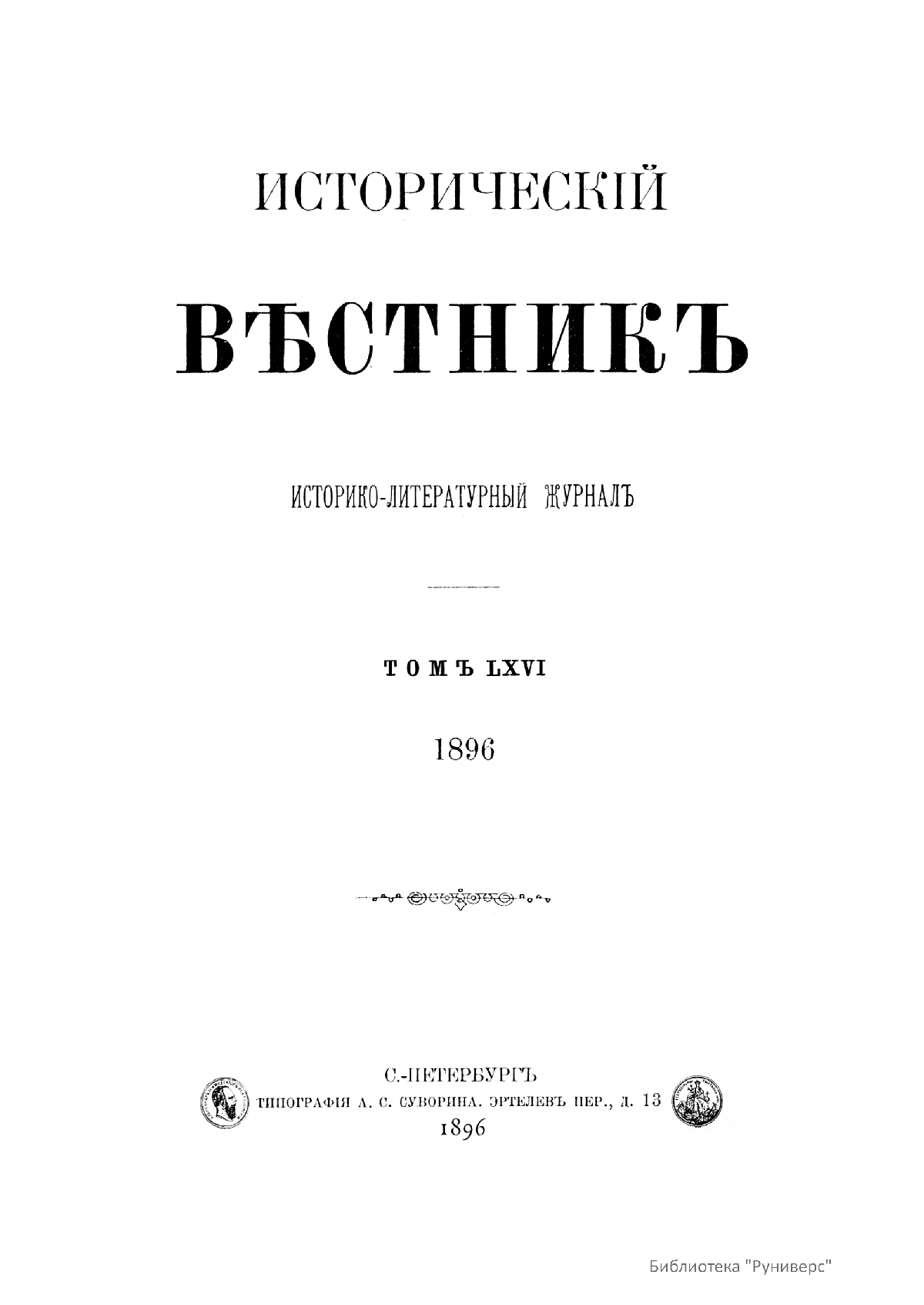 Исторический вестник. Историко-литературный журнал. Том LXVI