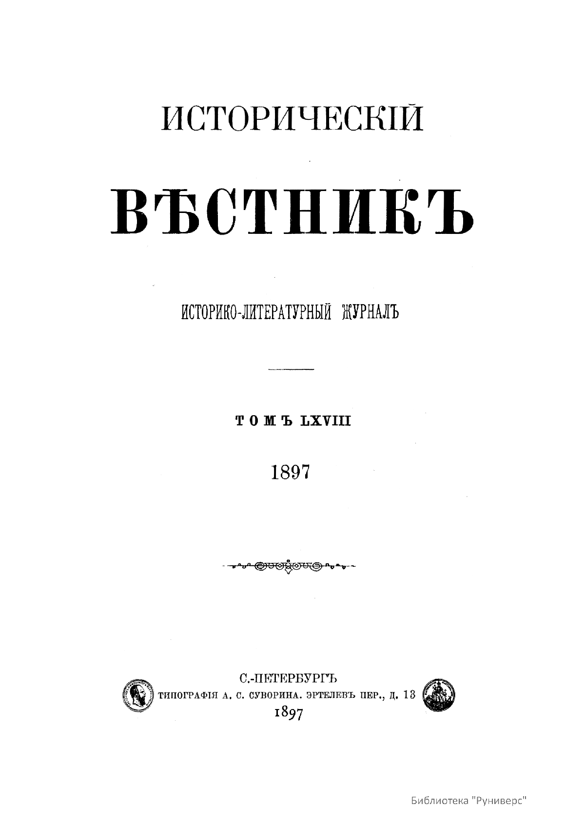 Исторический вестник. Историко-литературный журнал. Том LXVIII