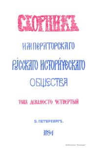 Сборникъ Русскаго историческаго общества. Томъ девяносто четвертый