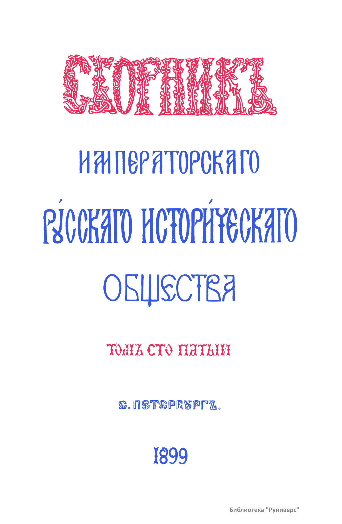 Сборникъ Русскаго историческаго общества. Томъ сто пятый