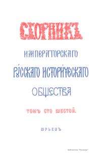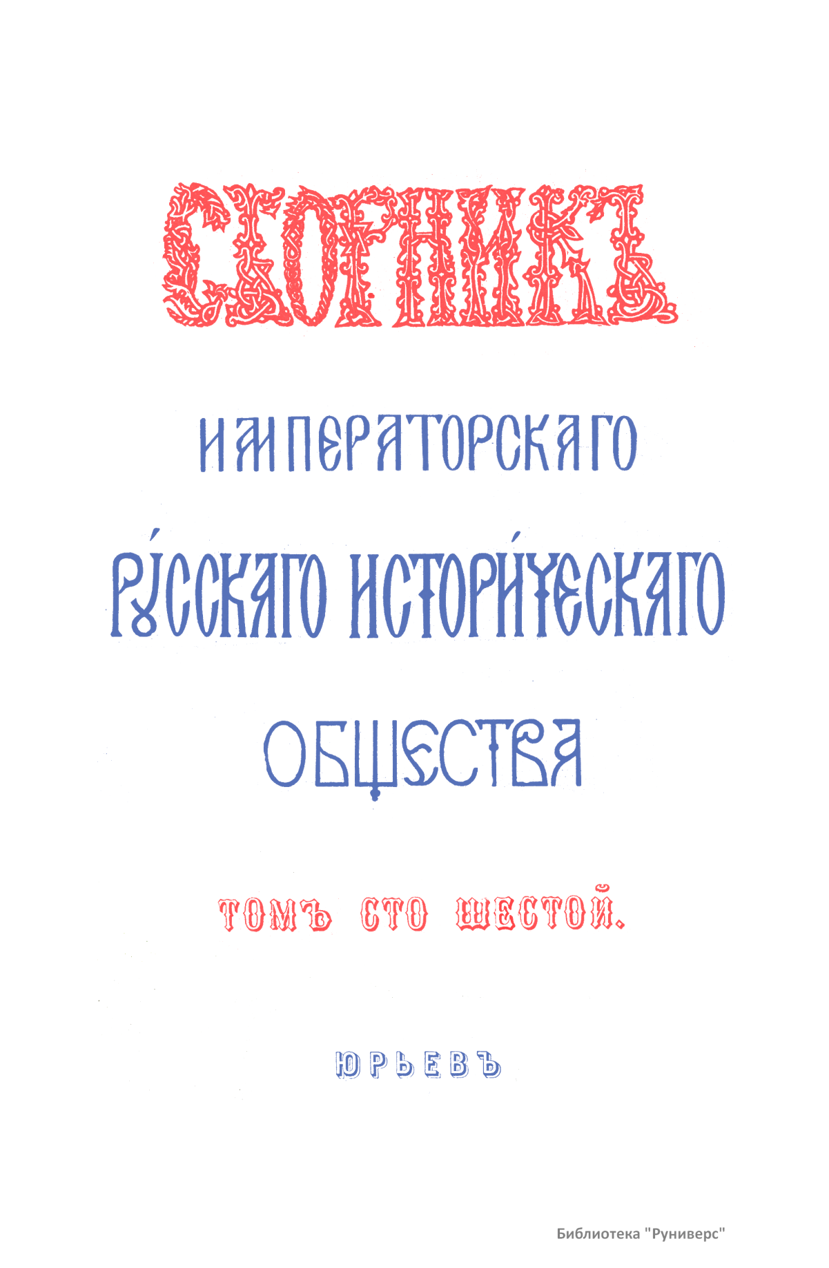 Сборникъ Русскаго историческаго общества. Томъ сто шестой