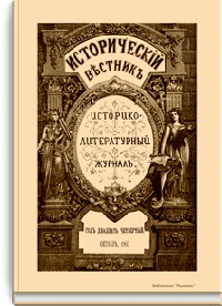 «Исторический вестник» - русский ежемесячный историко-литературный журнал. Издавался в Санкт-Петербурге с 1880-го по 1917 г. Журнал был основан А.С. Сувориным и С.Н. Шубинским с целью «знакомить читателей в живой, общедоступной форме с современным состоянием исторической науки и литературы в России и Европе». Вышло 150 тт. Каждый том состоял из трёх ежемесячных выпусков, имел свою нумерацию страниц, оглавление, список иллюстраций. Журнал приобрёл устойчивую популярность среди читателей, заняв прочное место в «триумвирате» русских исторических журналов наряду с «Русским архивом» и «Русской стариной». опережая их по количеству подписчиков. Отличием «Исторического вестника» было то, что он не помещал на своих страницах необработанных, сырых материалов. С другой стороны, журнал приближался по своему типу к журналам общелитературного образца, сочетая в себе коммерческий успех и доступное изложение материала.
