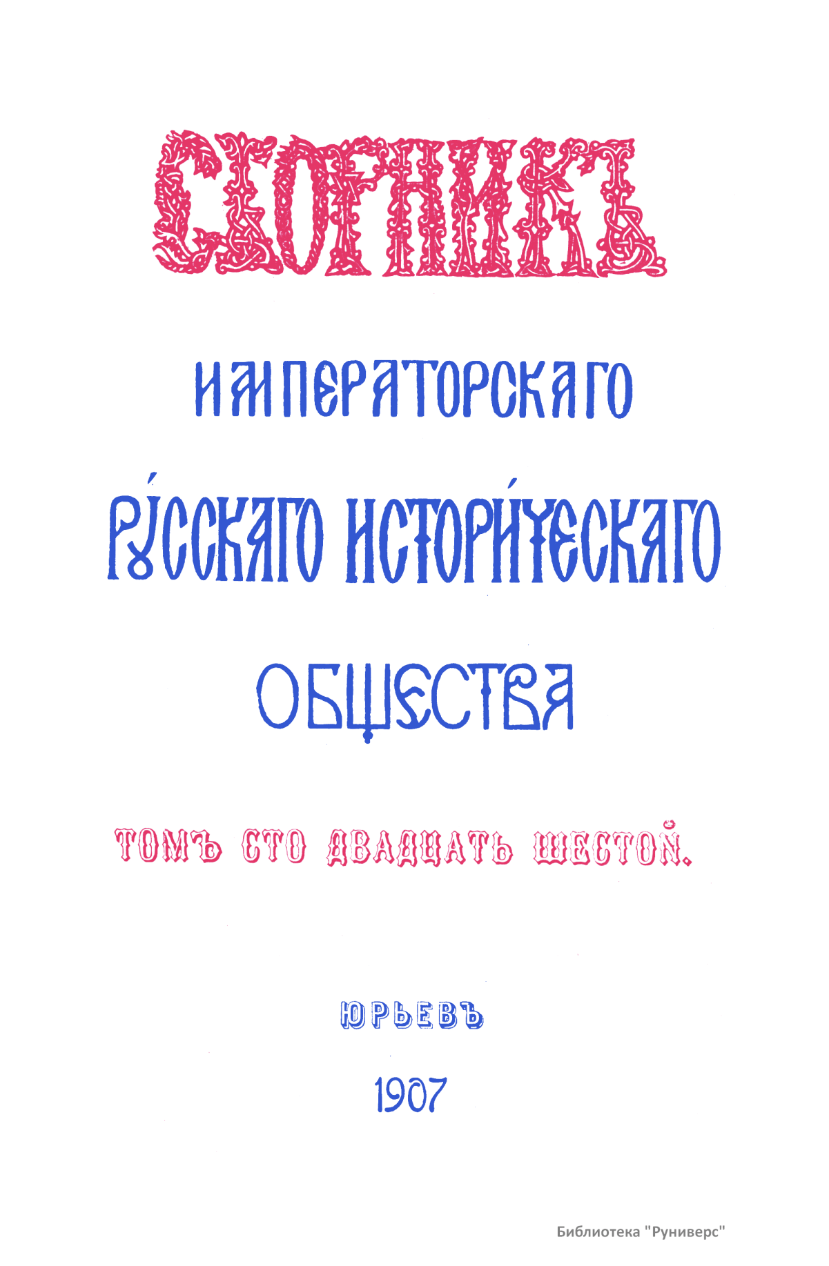 Сборникъ Русскаго историческаго общества. Томъ сто двадцать шестой
