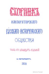 Сборникъ Русскаго историческаго общества. Томъ сто двадцать седьмой