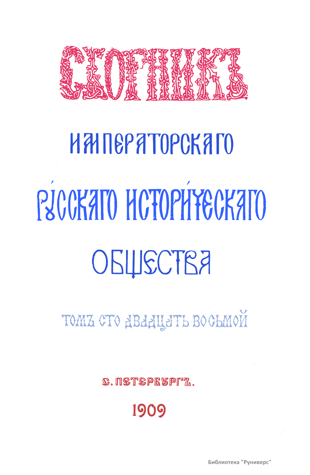 Сборникъ Русскаго историческаго общества. Томъ сто двадцать восьмой