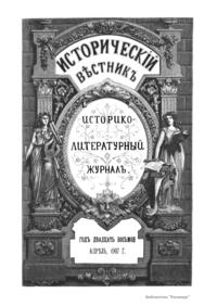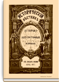 «Исторический вестник» - русский ежемесячный историко-литературный журнал. Издавался в Санкт-Петербурге с 1880-го по 1917 г. Журнал был основан А.С. Сувориным и С.Н. Шубинским с целью «знакомить читателей в живой, общедоступной форме с современным состоянием исторической науки и литературы в России и Европе». Вышло 150 тт. Каждый том состоял из трёх ежемесячных выпусков, имел свою нумерацию страниц, оглавление, список иллюстраций. Журнал приобрёл устойчивую популярность среди читателей, заняв прочное место в «триумвирате» русских исторических журналов наряду с «Русским архивом» и «Русской стариной». опережая их по количеству подписчиков. Отличием «Исторического вестника» было то, что он не помещал на своих страницах необработанных, сырых материалов. С другой стороны, журнал приближался по своему типу к журналам общелитературного образца, сочетая в себе коммерческий успех и доступное изложение материала.