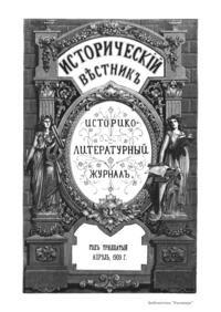 «Исторический вестник» - русский ежемесячный историко-литературный журнал. Издавался в Санкт-Петербурге с 1880-го по 1917 г. Журнал был основан А.С. Сувориным и С.Н. Шубинским с целью «знакомить читателей в живой, общедоступной форме с современным состоянием исторической науки и литературы в России и Европе». Вышло 150 тт. Каждый том состоял из трёх ежемесячных выпусков, имел свою нумерацию страниц, оглавление, список иллюстраций. Журнал приобрёл устойчивую популярность среди читателей, заняв прочное место в «триумвирате» русских исторических журналов наряду с «Русским архивом» и «Русской стариной». опережая их по количеству подписчиков. Отличием «Исторического вестника» было то, что он не помещал на своих страницах необработанных, сырых материалов. С другой стороны, журнал приближался по своему типу к журналам общелитературного образца, сочетая в себе коммерческий успех и доступное изложение материала.